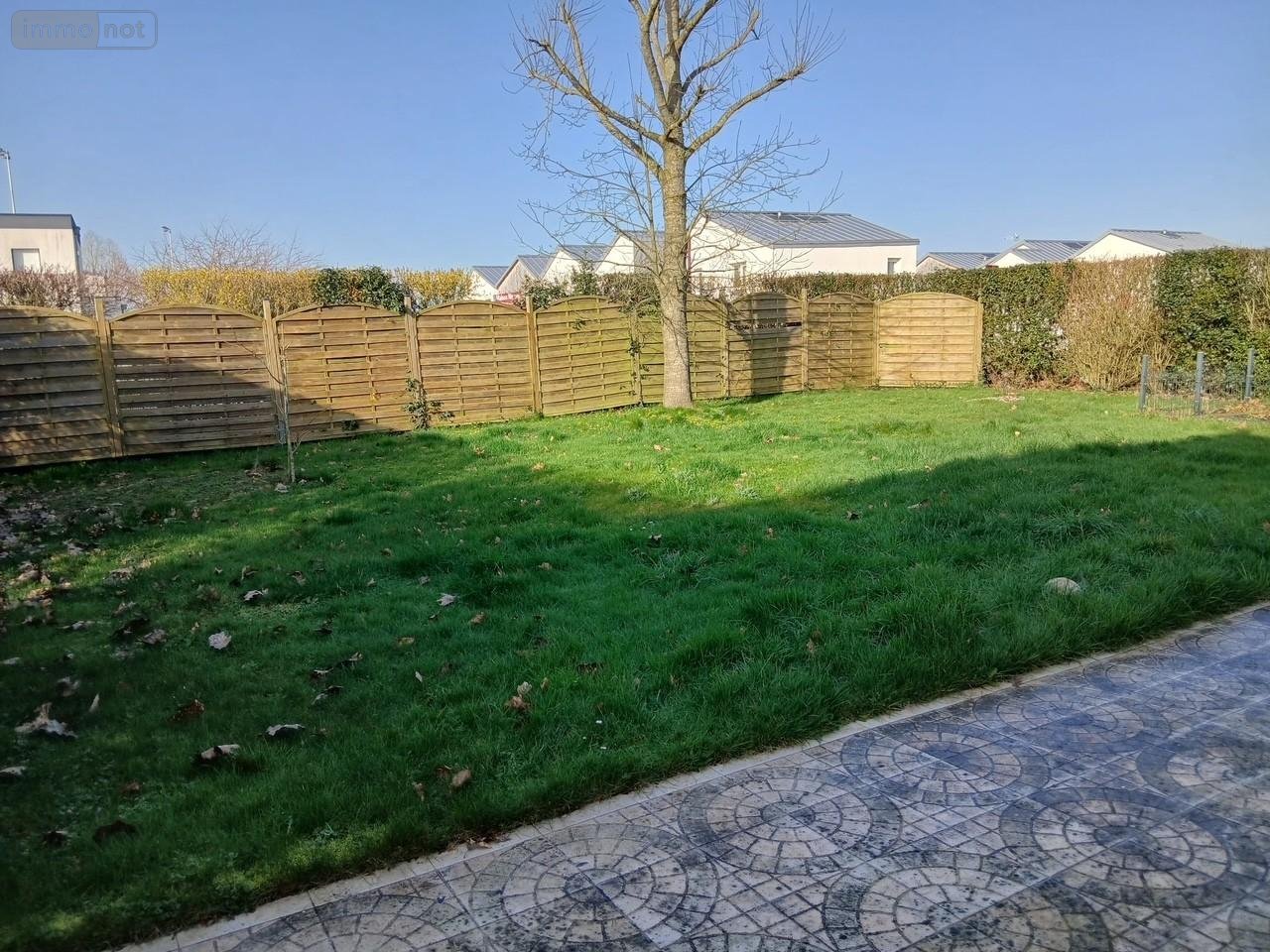 Un garage attenant à la maison, une terrasse et un jardin clos.