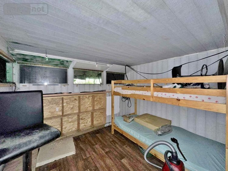 Sur site, un container de 31.00m² aménagé en une pièce de vie (12.50m²) avec cuisine aménagée et équipée et poêle à granulés, sanitaire indépendant, deux chambres (7.00 et 8.00m²) dont une avec VUE SUR L'ETANG.