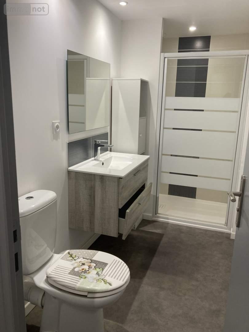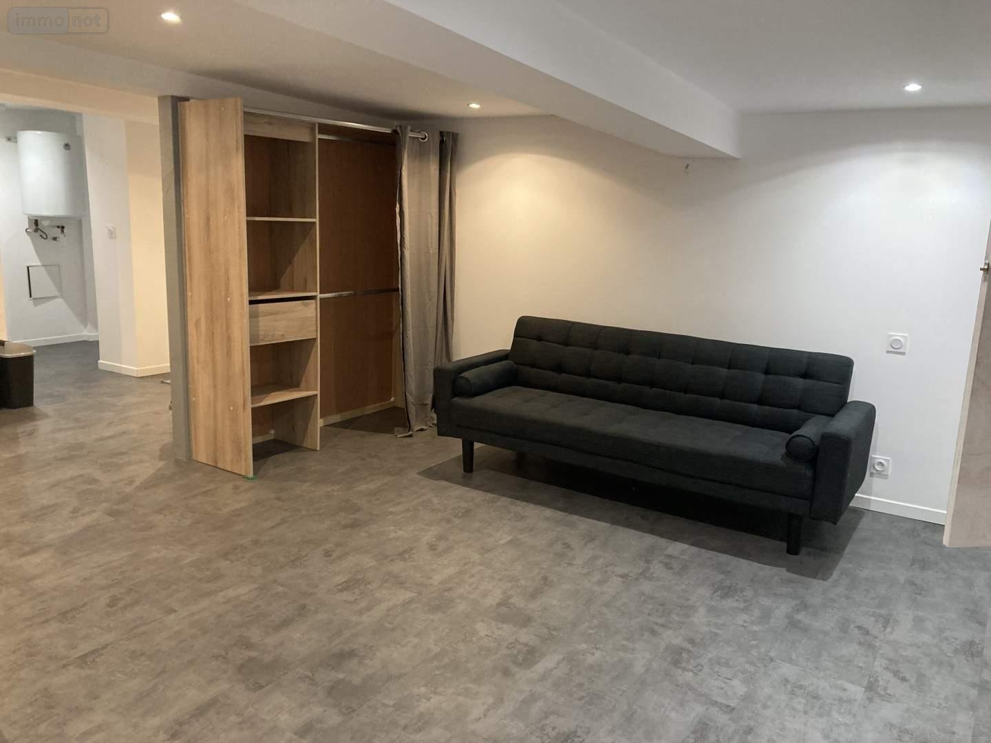 CRAON, Maison d'habitation S. Hab. : 40m² - Petite maison de plain pied, meublée, mitoyenne, comprenant : grande pièce à usage de séjour-chambre avec coin cuisine aménagée et équipée (frigo, plaque induction, four, micro-ondes), lingerie avec lave-linge et étagères, dégagement où se trouve le chauffe-eau, et salle d'eau-WC ; chauffage par convecteurs électriques programmables et production d'eau chambre par cumulus électrique. Petite cour commune. - Classe énergie : E - Classe climat : B - Montant estimé des dépenses annuelles d'énergie pour un usage standard : 610 à 840 € (base 2022) - Loyer mensuel hors charges : 380 €. Dépôt de garantie : 760 € Hon. charge locataire : 270 € TTC - Réf : LOC076/BOU