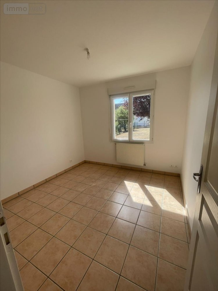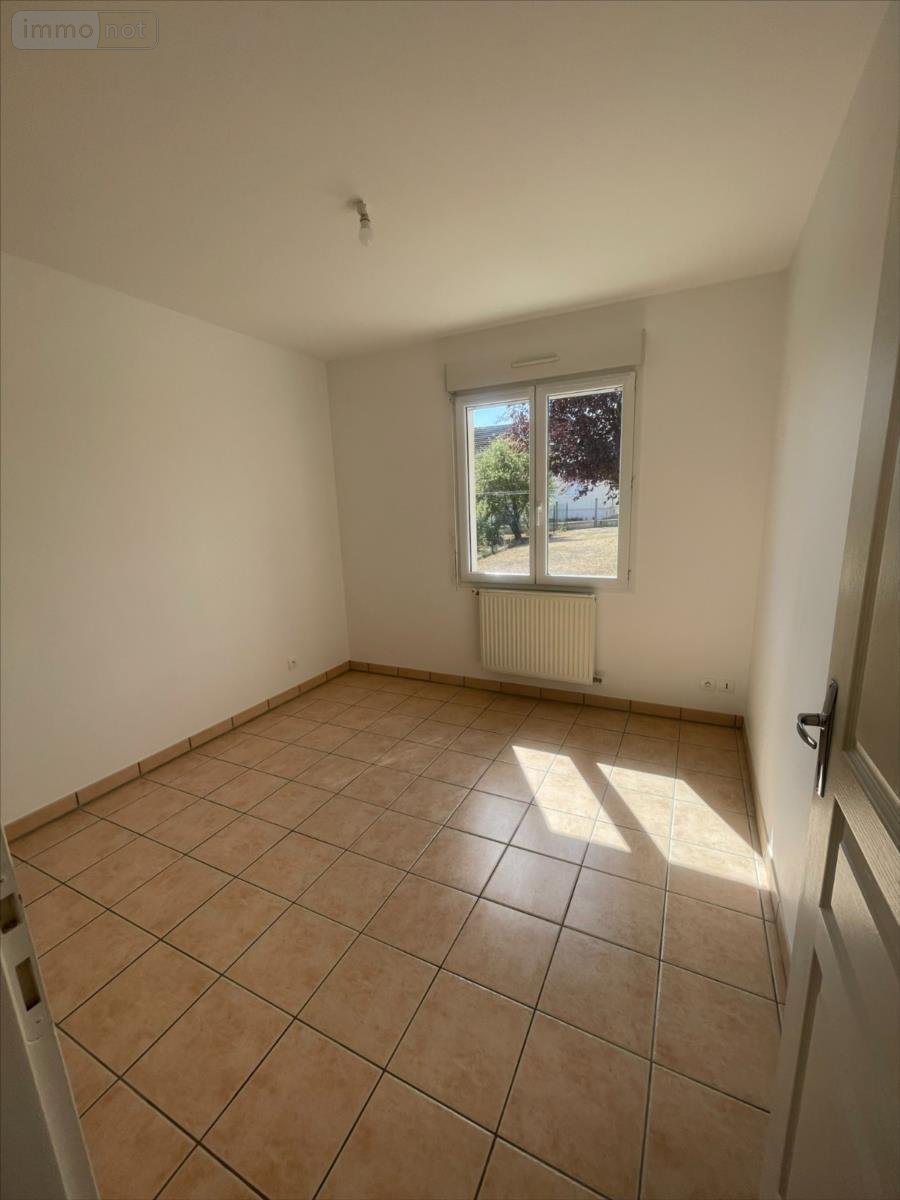 Maison de plain pied comprenant salon-séjour avec cuisine ouverte aménagée, cellier, garage, trois chambres, SDB, WC. Terrain clos.