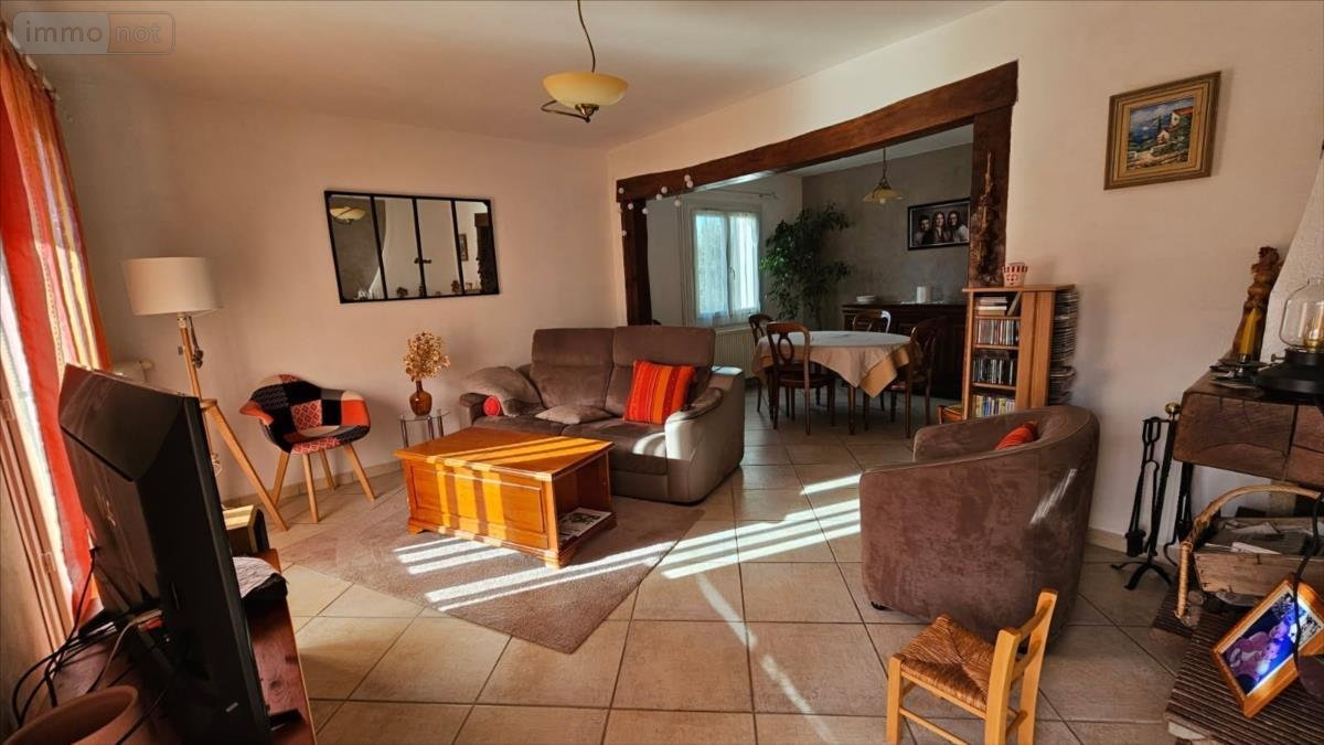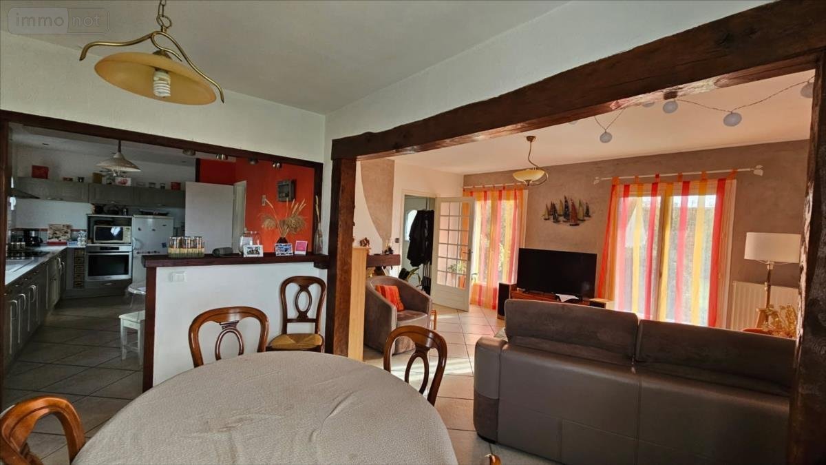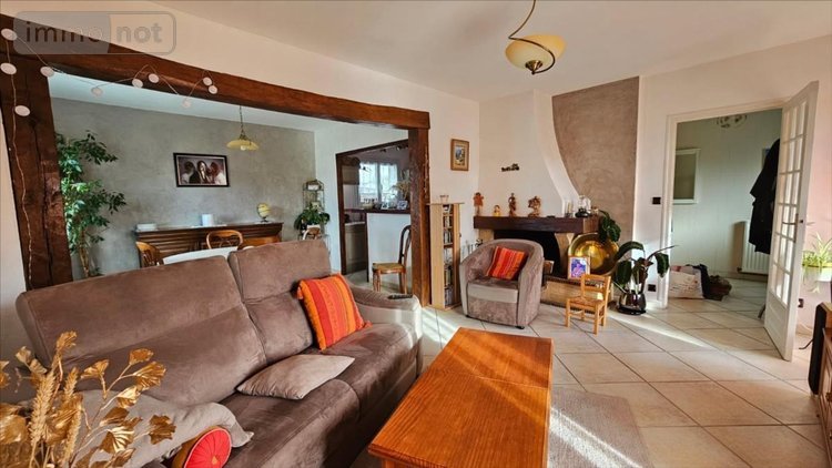 Maison de 145m² comprenant :- Au rez-de-chaussée de plain-pied : Entrée desservant salle de séjour (équipée d'une cheminée) ouvrant sur cuisine aménagée et équipée (le tout 45m²), couloir desservant deux chambres dont une avec salle d'eau privative, salle de bain, wc avec lave-mains, lingerie avec porte de service sur le jardin.- A l'étage : Palier desservant trois chambres dont une avec dressing, et une autre avec bureau, dégagement avec placards en sous-pente, pièce de rangement, salle d'eau, wc.Garage séparé.Atelier.Terrasse derrière la maison, cour et allée goudronnées.Jardin clos et arboré 1339m².