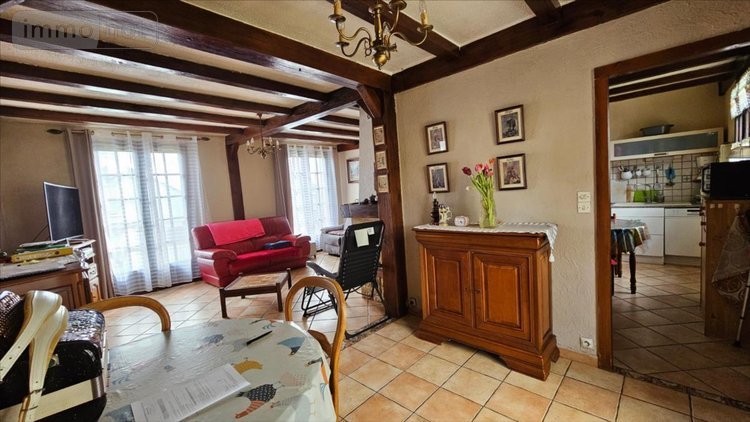 A vendre à DANZE (41160) - 15 mn VENDOME (41100) - Maison 112m² sur sous-sol enterré comprenant :- Au rez-de-chaussée de plain-pied : Entrée formant couloir desservant salle de séjour 29m² équipée d'une cheminée-insert et ouvrant sur véranda chauffée, cuisine, trois chambres dont une avec placard, salle de bain (baignoire et douche) et débarras- Au sous-sol total 70m² : deux pièces chauffées 11m² chacune à usage de chambre d'appoint, lingerie, débarras, atelier et garage.Autre garage 18m² à l'arrière de la maison. avec portail d'accès sur la route.Jardin clos et arboré 1000m².