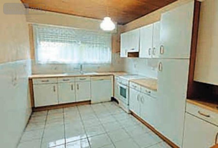 Maison (107 m² Hab. env.) sur 2 niveaux, ayant : entrée, séjour avec cheminée, cuisine, 4 chambres, salle d'eau avec wc, garage, wc. Jardinet. Environnement calme. Lycée à proximité.