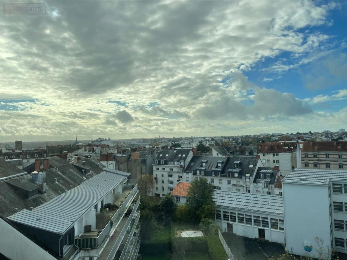 Vue imprenable sur Nantes 15 bd guist'hau au dernier étage de l'immeuble équipé d'un ascenseur, un studio meublé et entièrement refait comprenant une cuisine, une pièce de vie ultra lumineuse avec canapé clic-clac et espace à manger, salle d'eau.Surface carrez 11,87 m² mais surface utile de 14,15 m²Espaces communs très propres nettoyés chaque semaine avec accès w.c pallier sur même niveau/