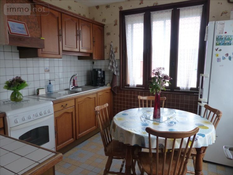 Proche de tous commerces et écoles, pavillon sur sous-sol, comprenant :Rez-de-chaussée : entrée/couloir, cuisine aménagée, salle-salon avec cheminée, 3 chambres, wc, salle d'eau (avec escalier d'accès au grenier).Sous-sol : arrière-cuisine, garage.