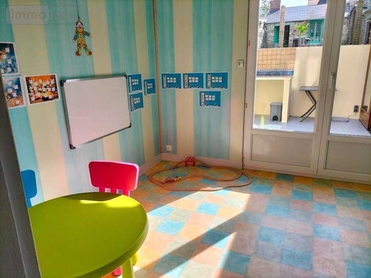 A proximité des commerces, maison de ville, comprenant : salle à manger, salon, bureau, cuisine aménagée et équipée, wc (avec placard et lave-mains), véranda.Etage : palier, salle d'eau avec wc, palier avec placard, chambre avec dressing, deux chambres traversantes.Etage : chambre avec placard, grenier aménageable.