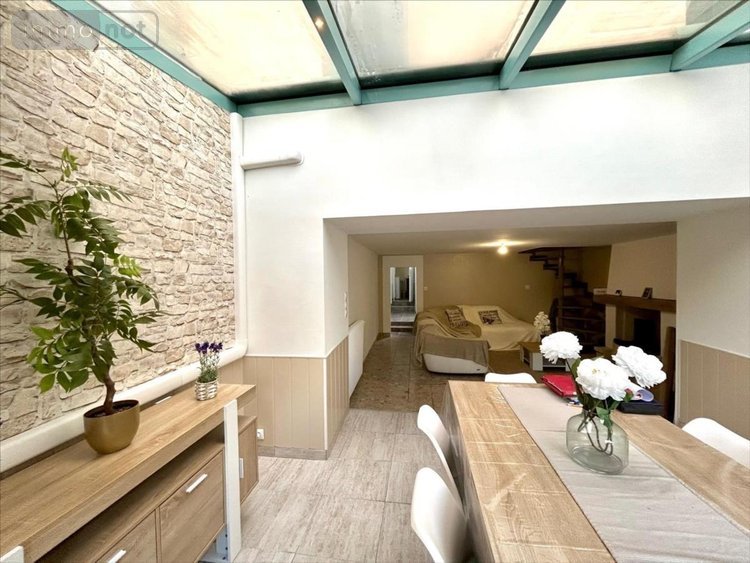 Au-rez-de-chaussée: : entrée, véranda ouvrant sur une cour, pièce à vivre avec cheminée, cuisine aménagée et équipée (neuve), salle d'eau avec WC, espace buanderie . Au premier étage: pièce palière distribuant deux jolies chambres , un cabinet de toilette avec WC et lavabo. Rangement . Au deuxième étage , sous combles: chambre .