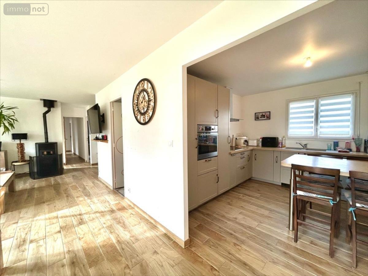 Au rez-de-chaussée: entrée, WC, vaste pièce à vivre très lumineuse avec poêle à granulés , cuisine aménagée et équipée en prolongement et ouverte sur le séjour, lingerie, dégagement distribuant une chambre parentale avec salle d'eau privative (douche, baignoire, coiffeuse) , et une autre chambre (ou bureau) . Couloir distribuant deux autres belles chambres , salle de bains (baignoire, WC) .