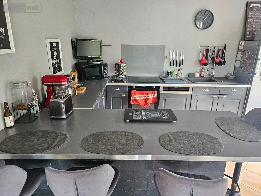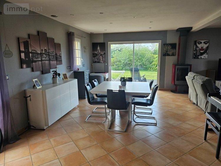 A 6 km de la station balnéaire de Barneville-Carteret et 12 km de Les Pieux, nous vous proposons ce pavillon de 2005 avec cour bitumée, terrain clos avec portail électrique, comprenant : entrée avec escalier donnant sur la salle-salon lumineuse avec poêle à bois et cuisine aménagé et équipée, buanderie, wc suspendus, garage avec fosse et grenier.Etage : palier, wc, salle de bains (baignoire et douche), 3 chambres.