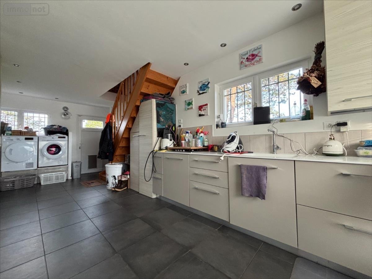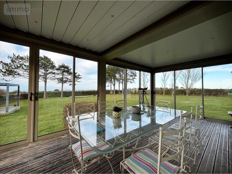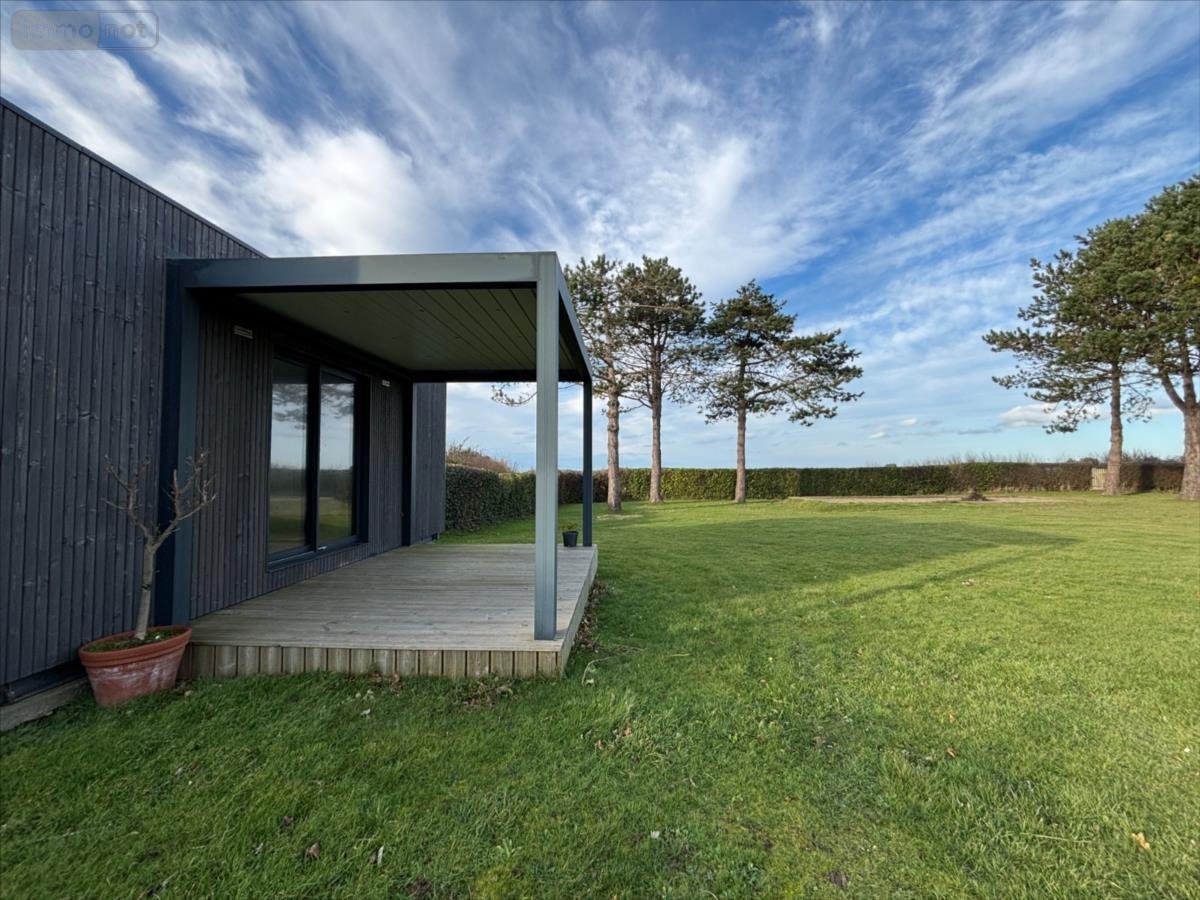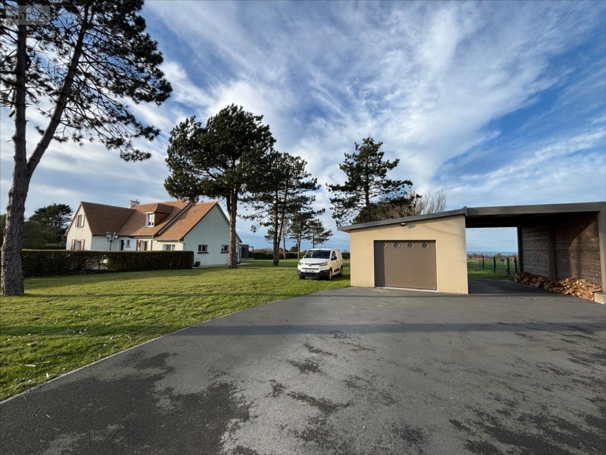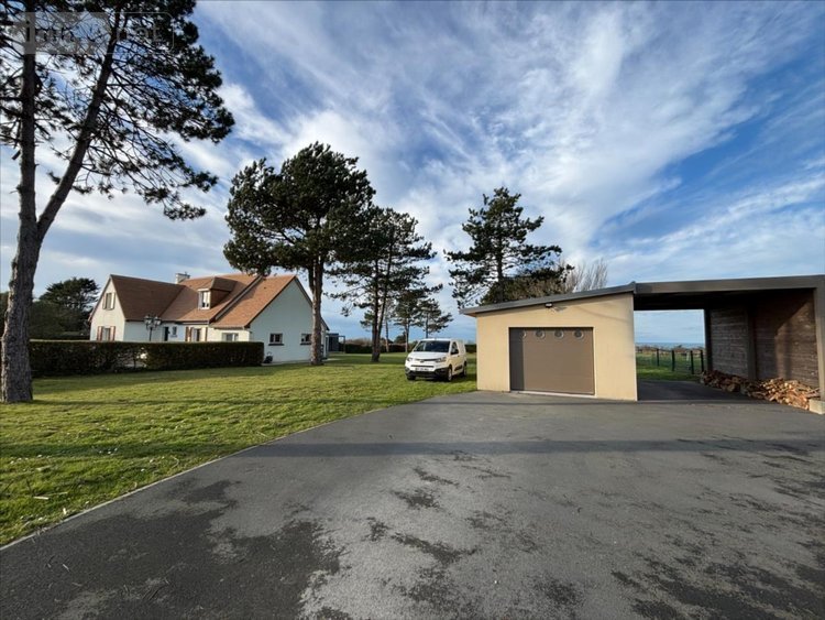 NOUVEAUTÉ cette maison située à FERMANVILLE dans un environnement calme, proche de la mer (2 minutes) et une vue sur celle-ci se compose comme suit: - Au rez-de-chaussée : une entrée desservant une chambre, une salle d'eau avec toilette, une grande buanderie/arrière-cuisine et un espace de vie de 88 m2 avec un coin séjour-salon et sa cheminée, un cuisine équipée prolongée d'un second salon et le tout avec accès sur une terrasse couverte avec une pergola permettant de profiter de cette vue mer.- A l'étage vous trouverez 3 chambres et une salle d'eau avec toilette.Jardin autour avec une 'Natibox' (composée d'une pièce de vie avec coin cuisine, une salle d'eau/toilette et une terrasse), un garage et son carport et un champ attenant, le tout sur 8581 m2.La maison est chauffée en partie avec une pompe à chaleur et avec des radiateurs électriques, sa taxe foncière est de 1172 €.