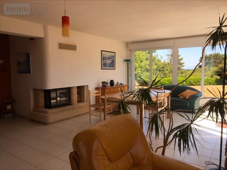 - Au rez-de-chaussée: entrée sur grande pièce de vie traversante de près de 40m² (avec cheminée), et dégagement distribuant cuisine aménagée, salle de bains, W.C, et grand garage (avec pièce à usage d'atelier - autonomie de plain-pied possible).