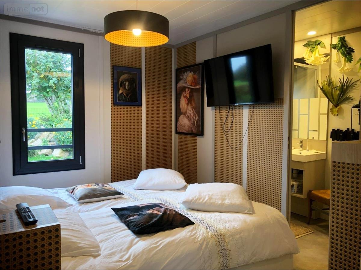 Mobilier inclus en quasi totalité. Présence d'un abri de jardin de 5m². Chalet d'une surface de 55,25m², avec terrasse fixe, couverte et close, de 12,75m² (soit 68m² habitable en tout).