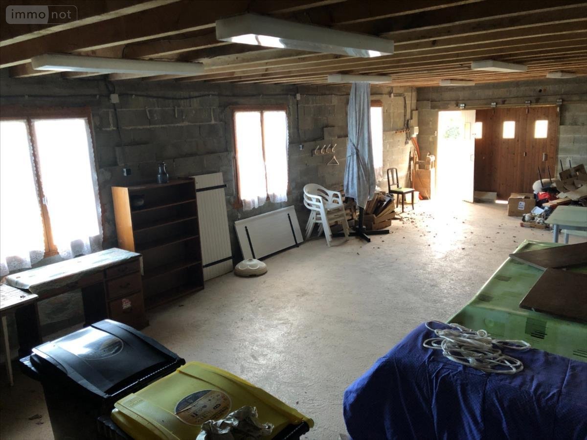 Grand garage de près de 60m² au sol, avec plusieurs ouvertures, et grand grenier au-dessus.