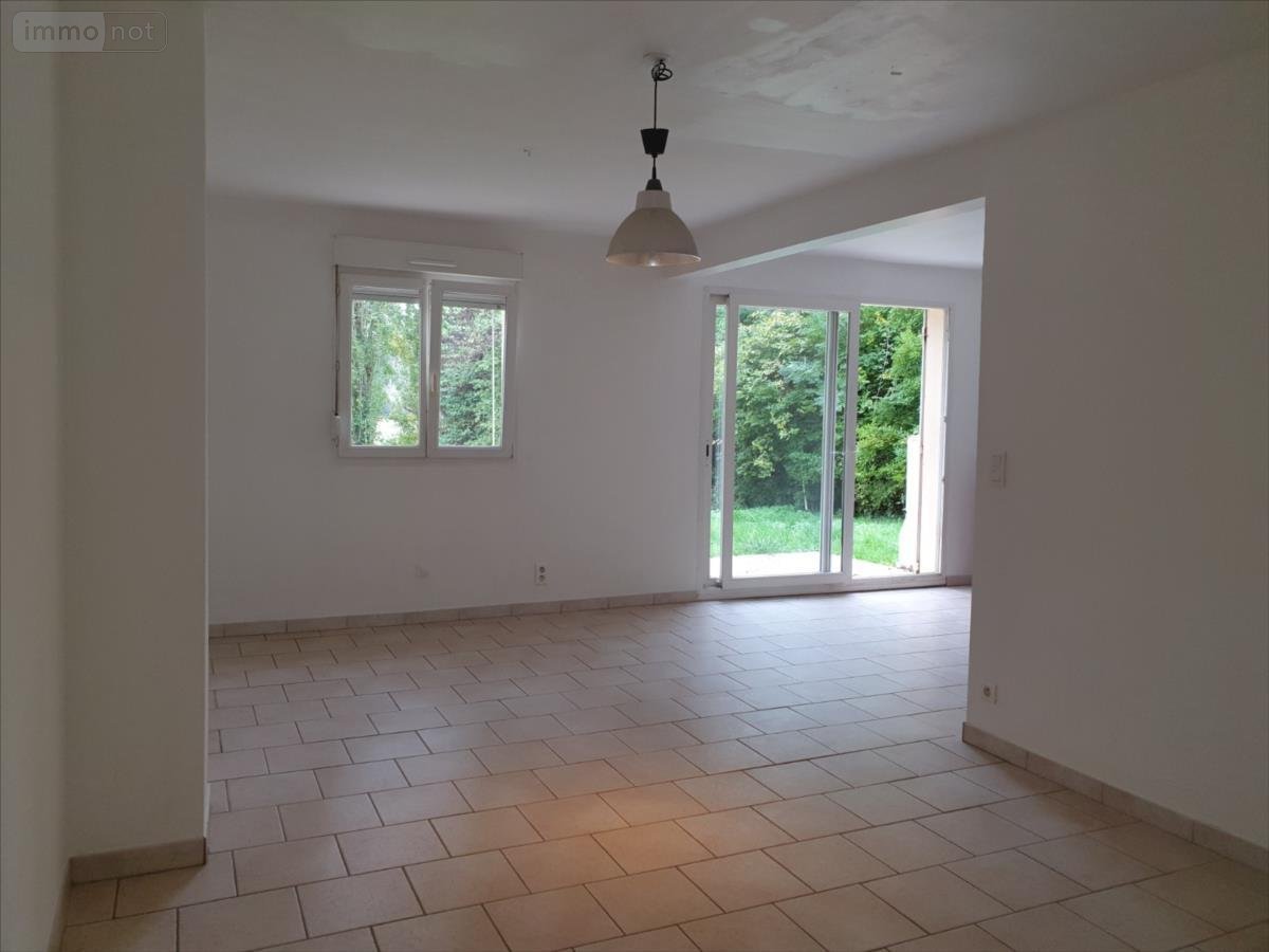 Entrée, cuisine, salon avec poêle à bois, salle à manger avec accès terrasse et jardin, dégagt, 2 chabres, Sde bains/douche et wc.