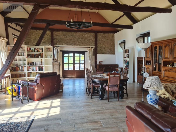 = Au rez-de-chaussée : spacieux salon-séjour avec poêle à bois, une grande cuisine aménagée et équipée ouverte sur coin repas et coin détente, une arrière cuisine, une chambre avec placard, une salle d'eau avec WC