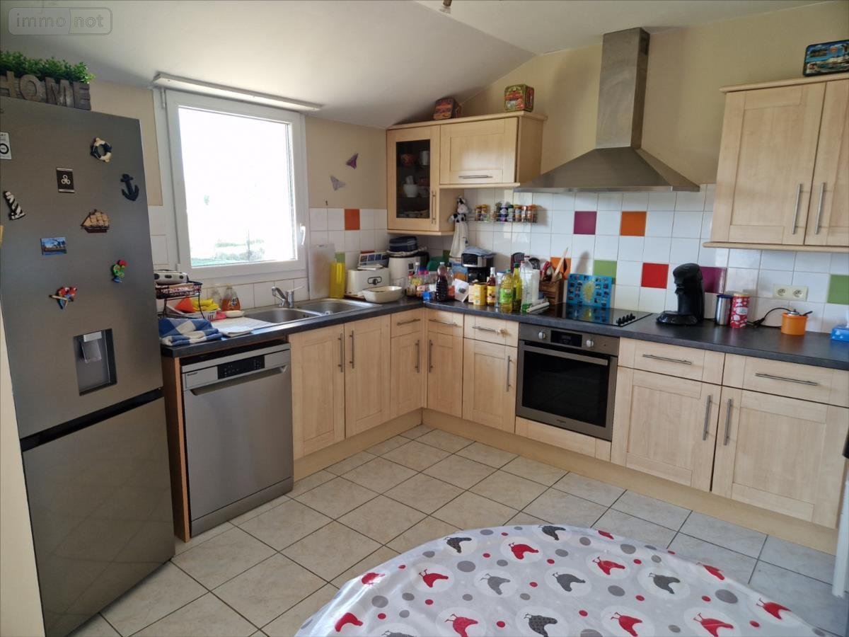 - une cuisine aménagée et équipée (hotte, plaque induction, four), un salon/séjour, un couloir desservant trois chambres, une salle d'eau et un wc. A suivre : un double garage avec grenier au-dessus.