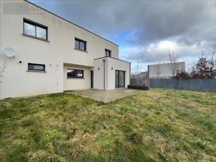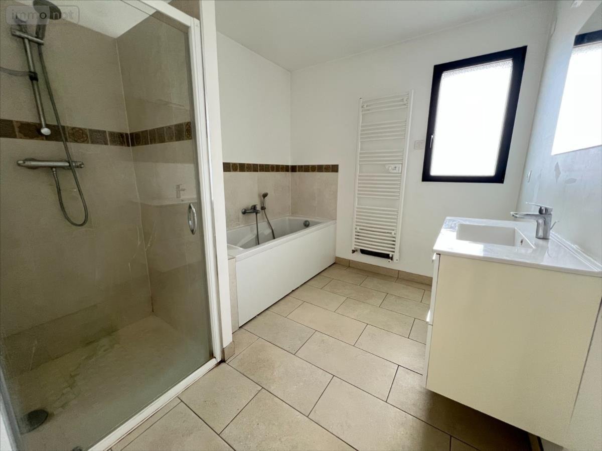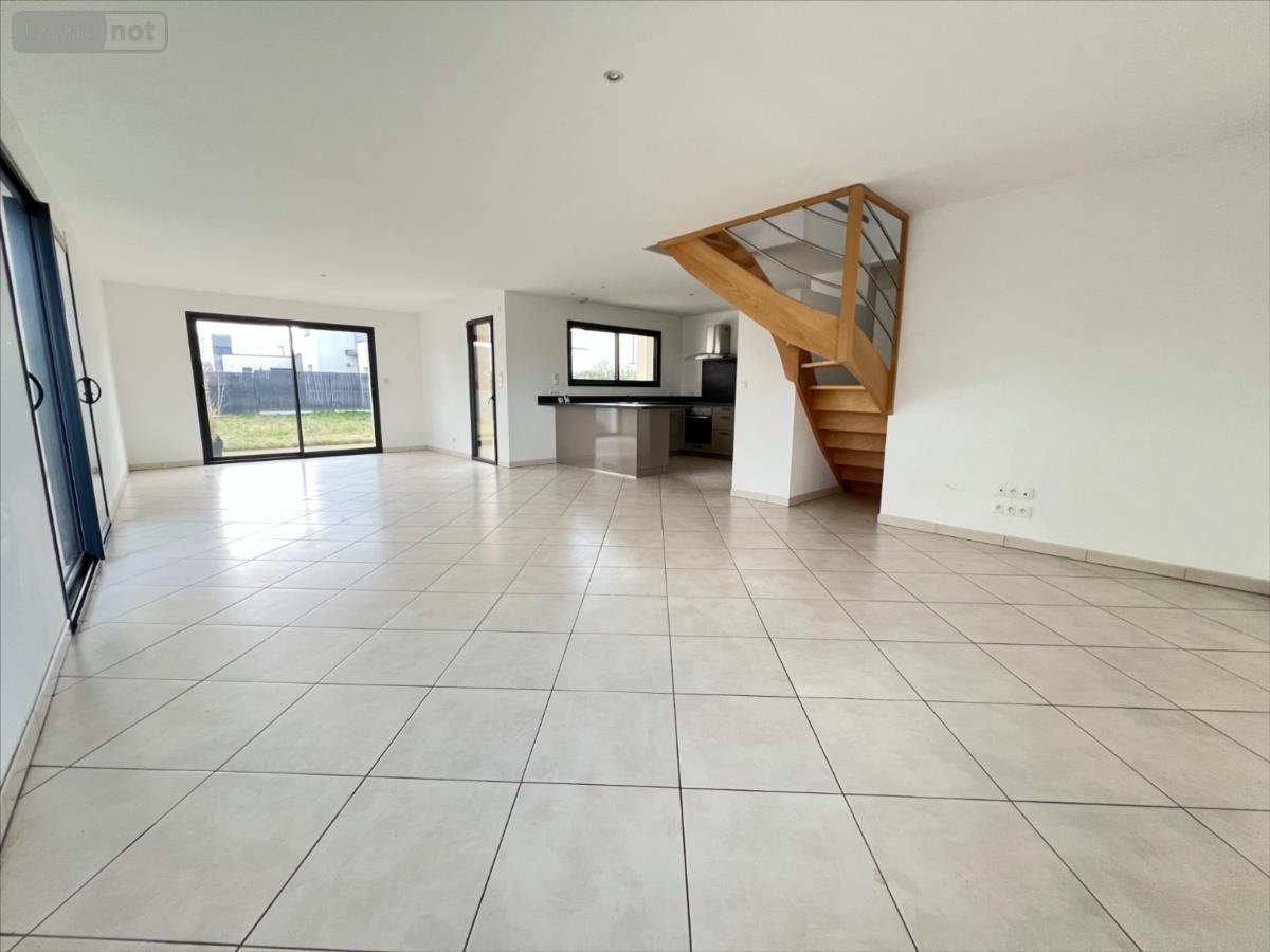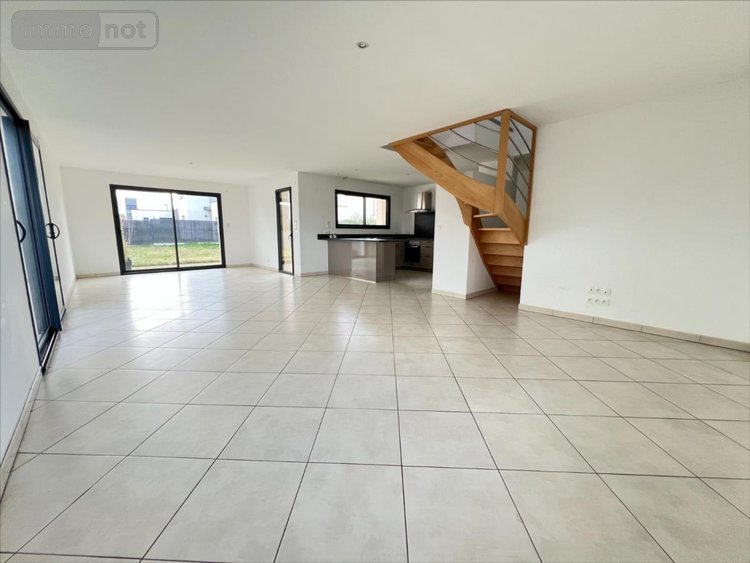Au rez-de-chaussée : Entrée avec placard, cuisine aménagée et semi-équipée ouverte sur la pièce de vie ayant un accès à la terrasse et jardin, et un W.C indépendant.A l'étage : Palier desservant trois chambres, une salle de bains (avec douche, baignoire, double vasque) et un W.C indépendant.