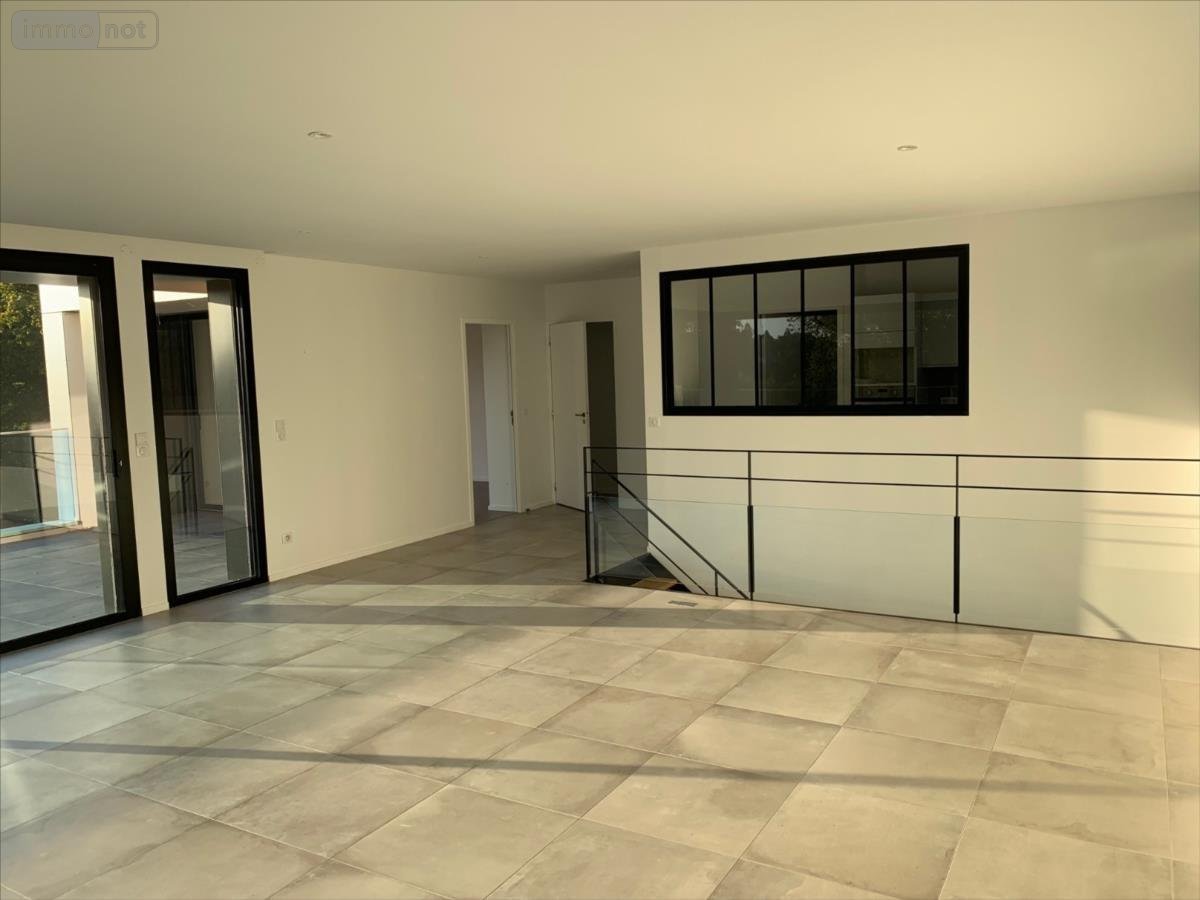 - au rez-de-chaussée : entrée avec placards, belle pièce de vie de 45 m² donnant accès à la terrasse de 38 m², cuisine équipée et arrière cuisine, une chambre avec dressing et salle de douche privative, deux WC ;