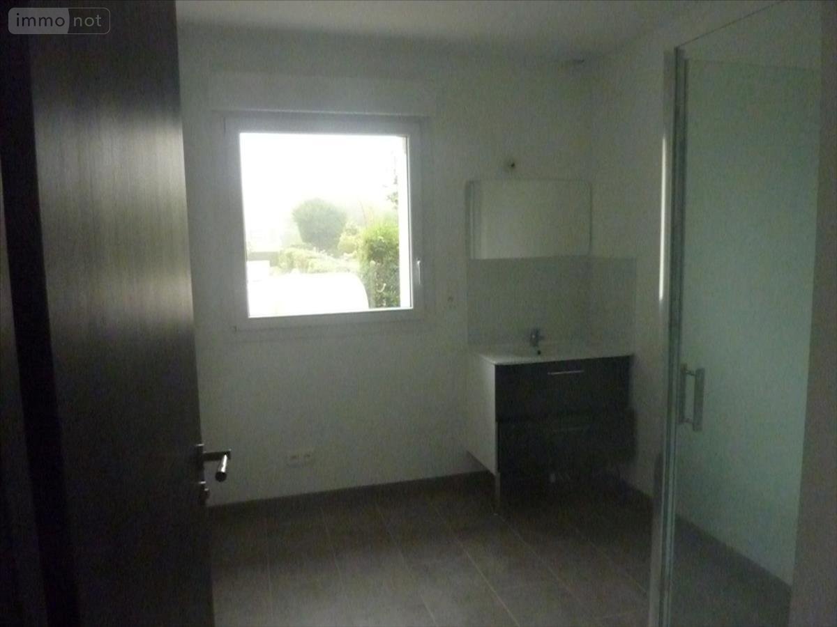 Elle se compose au rez-de-chaussée d'une grande pièce de vie avec cuisine aménagée (meubles hauts et bas, évier) donnant sur la terrasse et le jardin clôturé, d'une chambre, d'une salle de douche et de WC séparés.