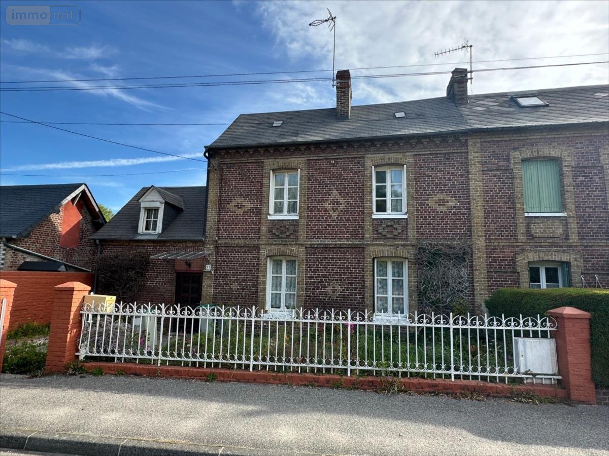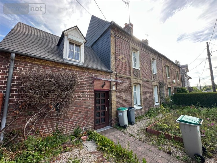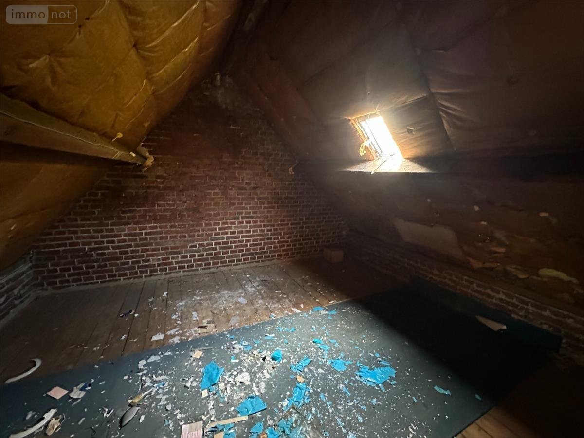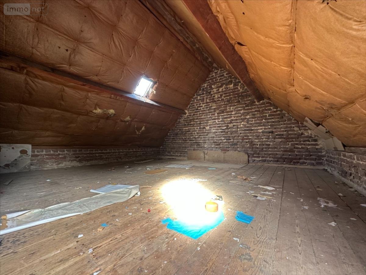 Petite maison de ville en briques mitoyenne d'un coté offrant:Au rdc: Entrée sur cuisine, salle à manger, salle de bain, wc, deux petites pièces .Au premier étage: deux chambresAu deuxième étage: grenier.caves en sous-sol.chauffage GDV .Terrain d'environ 665 m² jusqu'à la rivière.