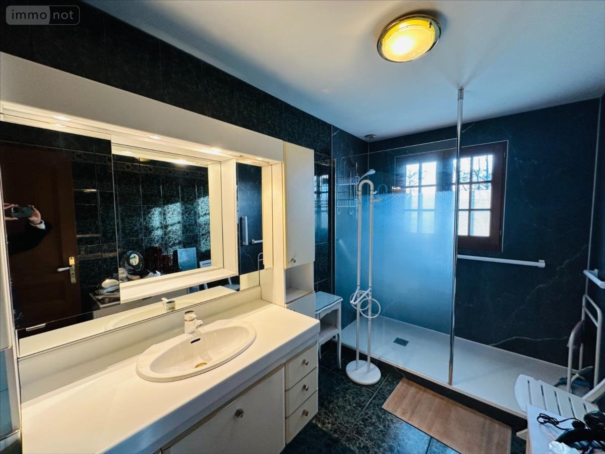 A l'étage: trois chambres dont une avec placard, wc, salle d'eau, bureau.