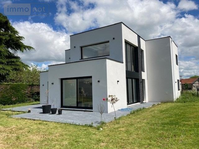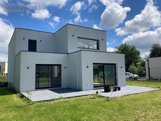 Maison contemporaine de type F5 comprenant au RDC: une entrée avec WC lave mains et vestiaire, un grand séjour salon très lumineux sur terrasse sud ouest, une cuisine aménagée équipée, une chambre avec salle de douche,au 1er étage pièce palière et 3 chambres avec salle de bains et douche WC.
