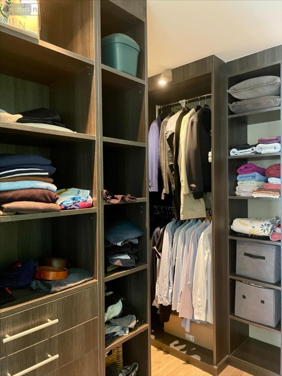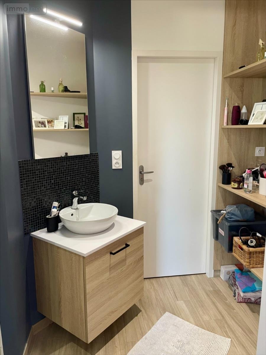 Au rez-de-chaussée, elle offre une belle pièce de vie lumineuse de 46 m² avec poêle à bois, une cuisine aménagée et équipée, ainsi qu'une suite parentale avec dressing et salle d'eau privative. WC séparé.