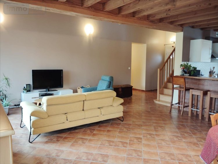 A l'étage, un palier donne accès à deux chambres (10.5m²) ainsi qu'une salle d'eau avec WC. Un garage de 27 m² complète ce bien.Jardin arboré clos sur 3 côtés d'une surface de 800 m².Chauffage au sol par pompe à chaleur (groupe extérieur changé cette année).VMC double flux, prise RJ45.