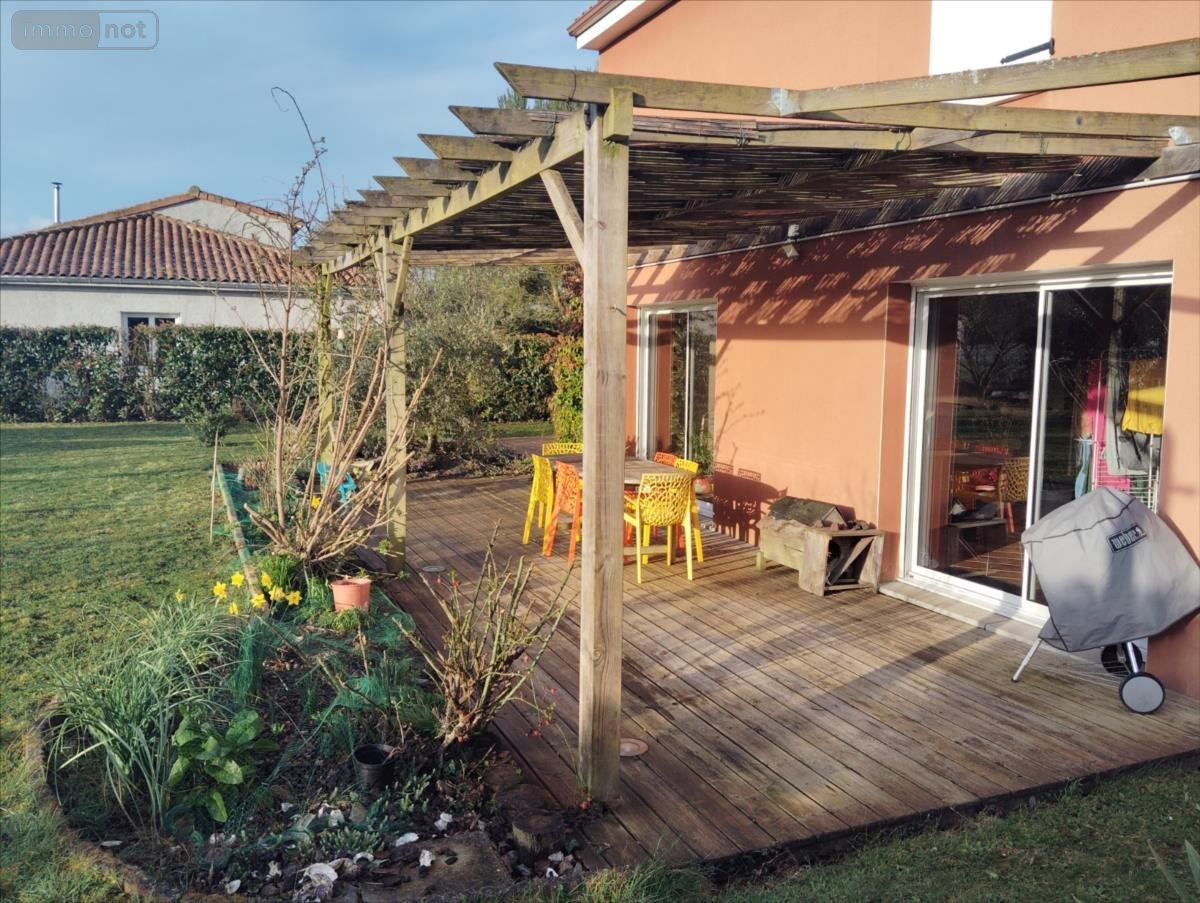 Elle possède de plain pied une vaste pièce de vie de plus de 40 m² ouverte sur la cuisine aménagée et équipée, ainsi qu'une arrière cuisine.Côté nuit, un dégagement dessert trois chambres avec placards (11.75, 12.15 et 13.20 m²), une salle d'eau ainsi qu'un WC.Dans la continuité de la pièce de vie, une belle terrasse couverte d'une pergola en bois vous permettra de profiter du jardin et des belles journées ensoleillées.