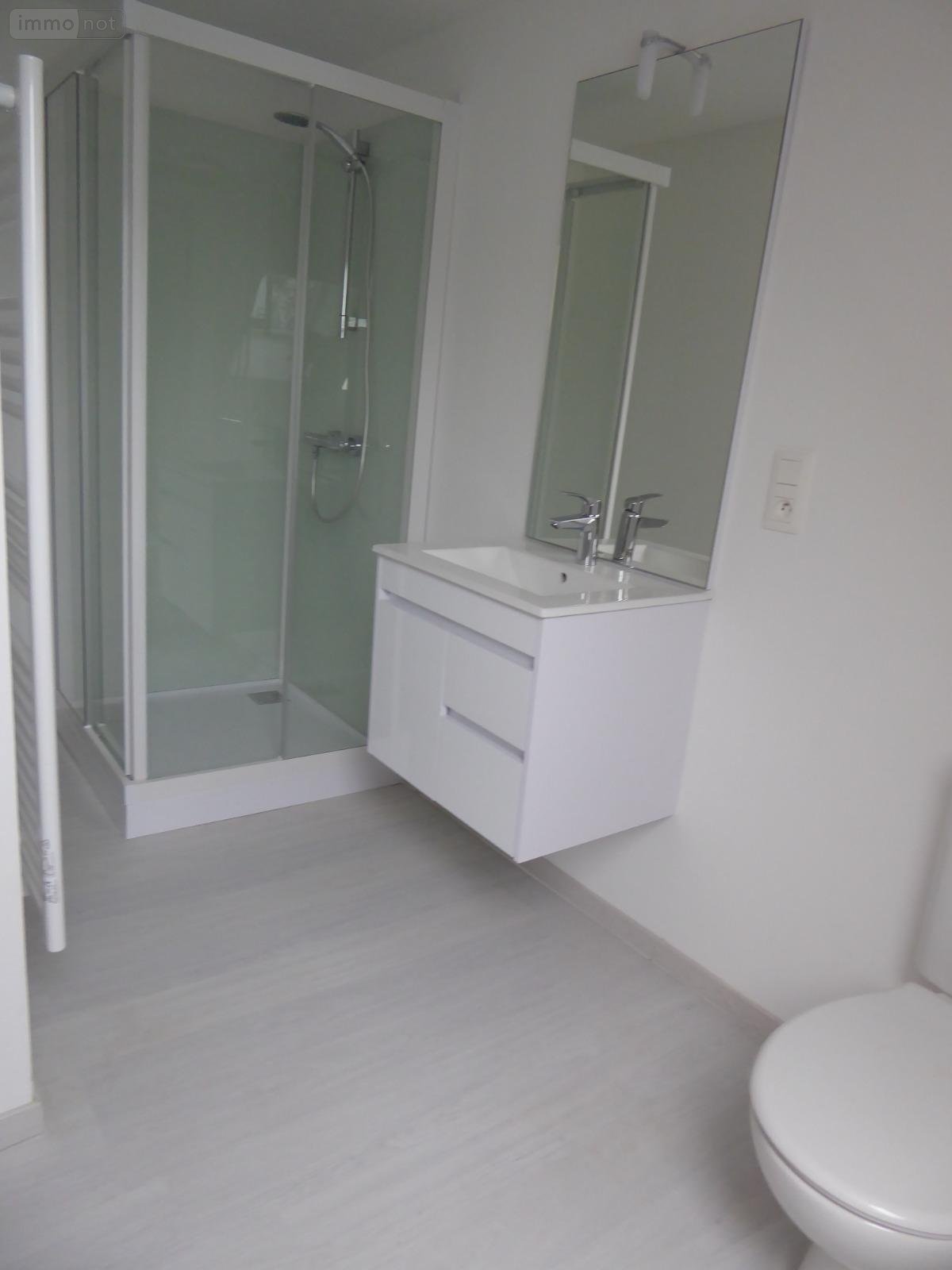 - au rez-de-jardin : entrée, dégagement, salle d'eau, chambre et WC,