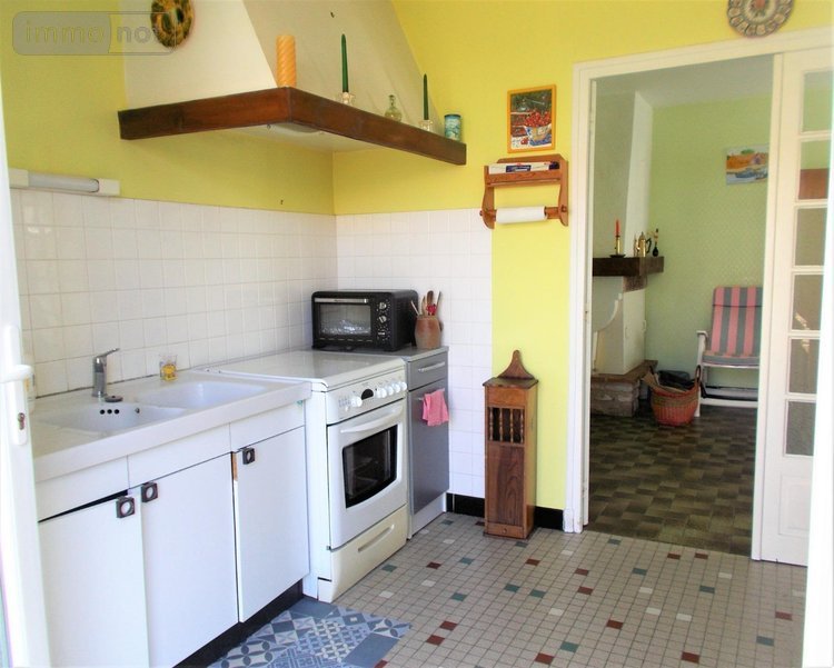 Jolie maison à vendre à DOLUS D'OLERON en Charente-Maritime (17), en centre-ville, au calme, de plain-pied comprenant : cuisine indépendante, séjour-salon en L d'environ 29,50 m2 avec cheminée insert, couloir d'accès à 3 chambres, salle d'eau, w.c. Dépendance composée d'un auvent, préau, pièce d'appoint. Beau terrain clos sur 961 m2 (possibilité de division, d'extension du bâti, construction d'une 2ème maison).