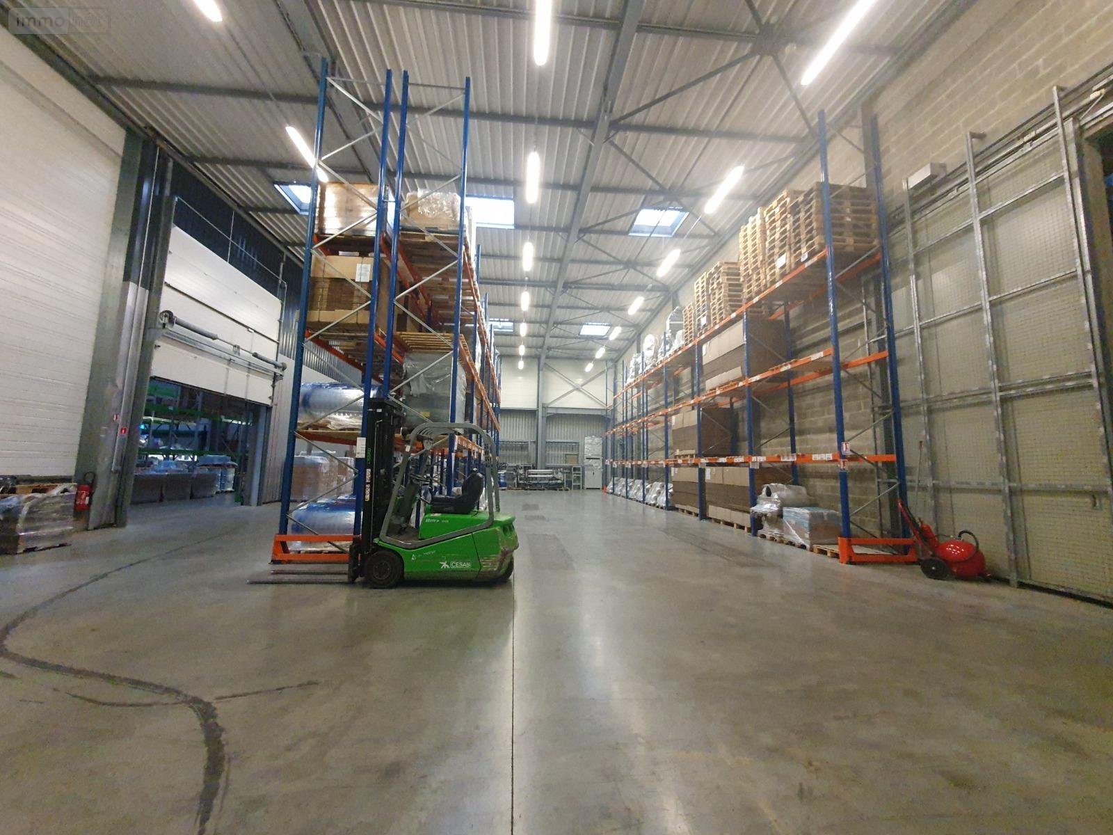 Bâtiment industriel à usage logistique de 1.896m² comprenant : Espace de stockage avec rayonnage (jusqu'à 14m de hauteur sous plafond) de 1896m². Deux quais de déchargement.