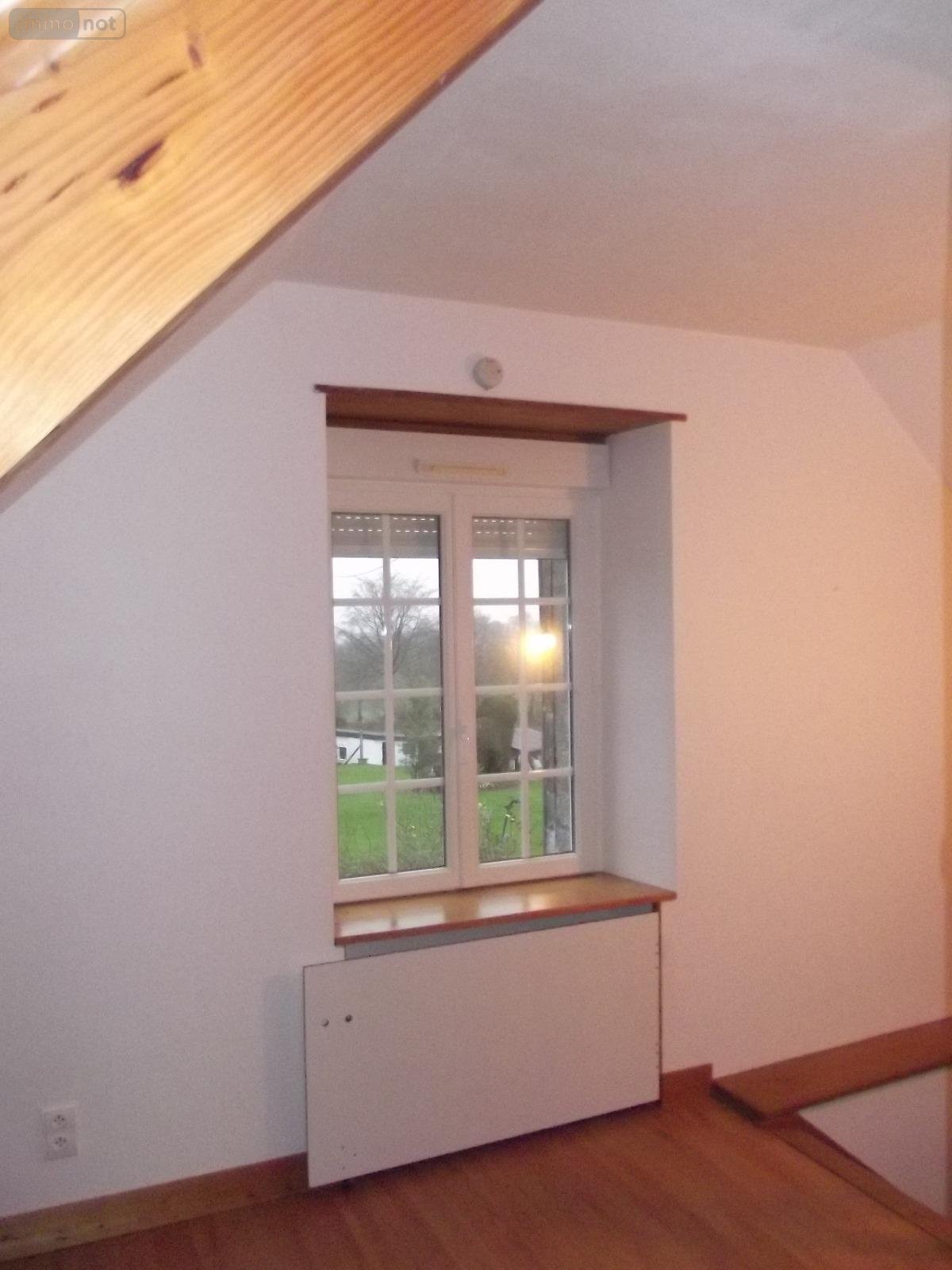 - A l'étage sur parquet et solives semi-mansardé : palier couloir, deux chambres, salle d'eau carrelées.