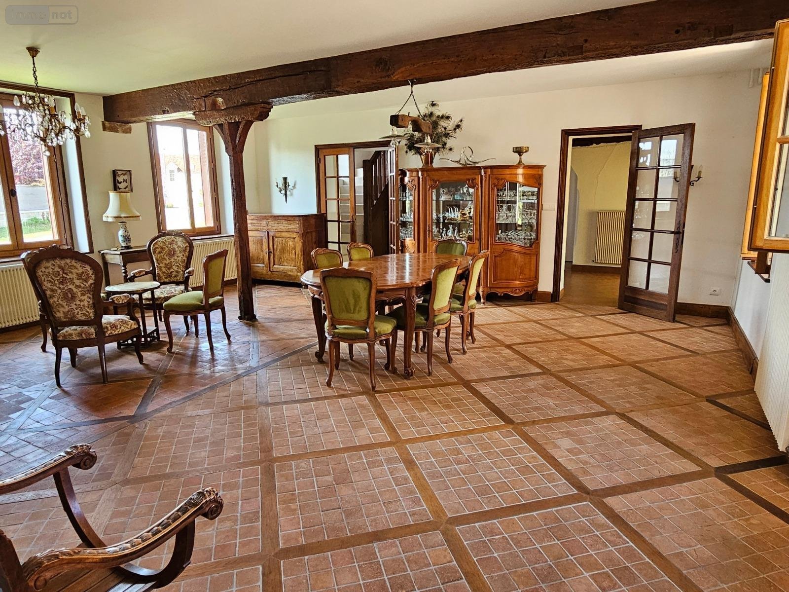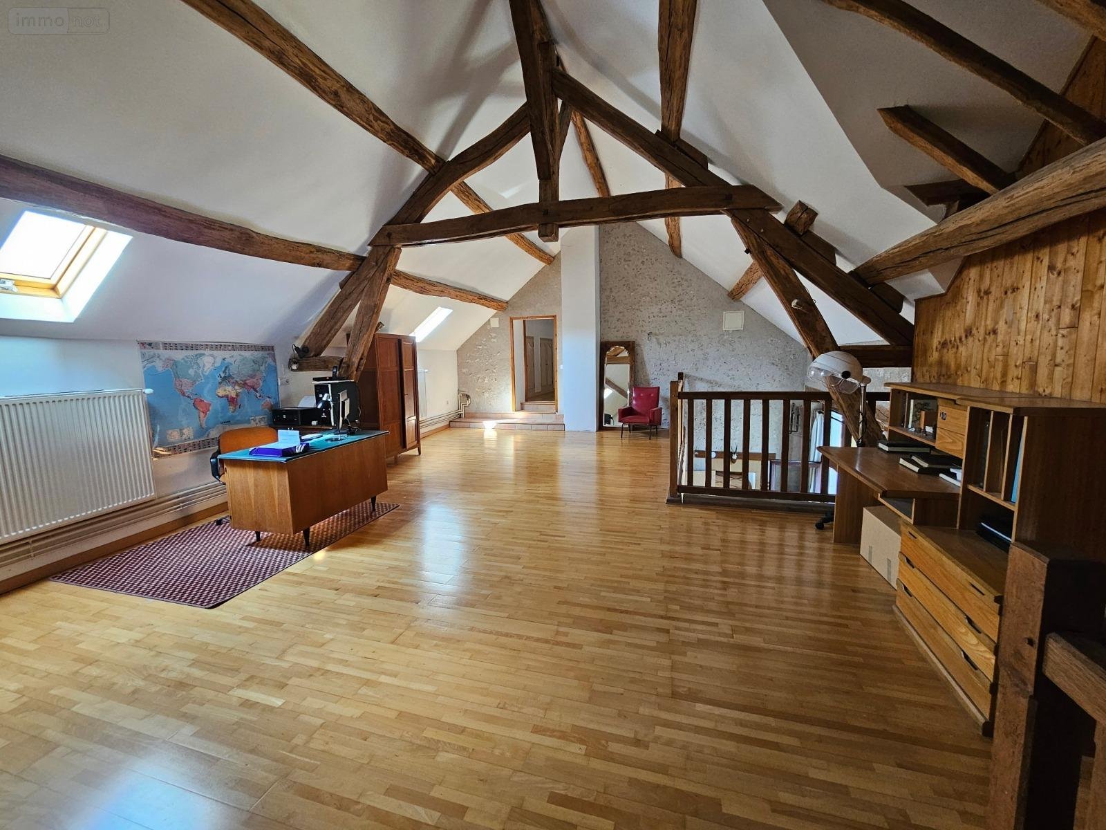A l'étage : 4 chambres, une mezzanine, une salle d'eau et salle de bains, WC.