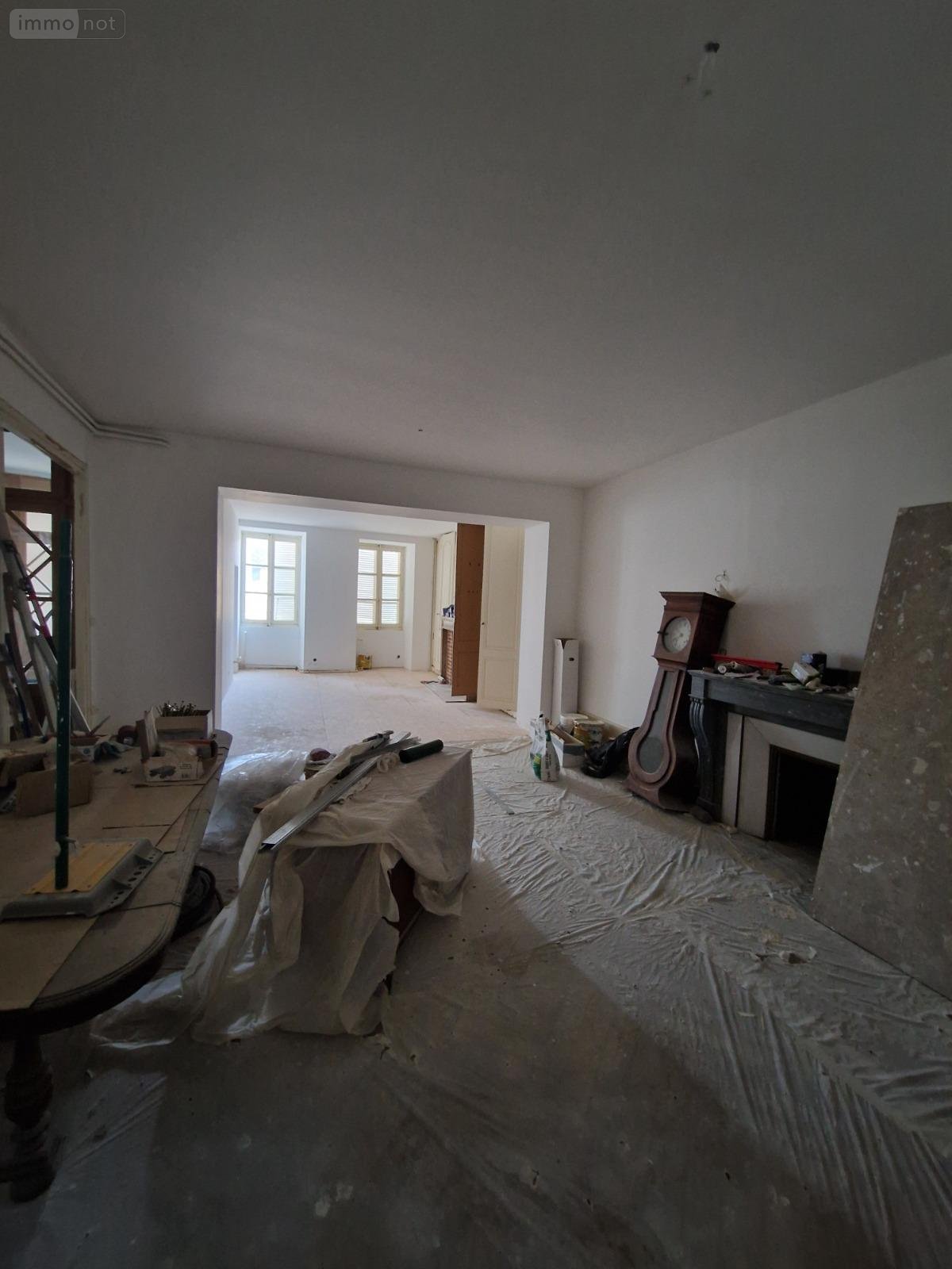 Charme de l'ancien : parquet, larges ouvertures, poutres à la française, cheminées, hauts plafonds.
