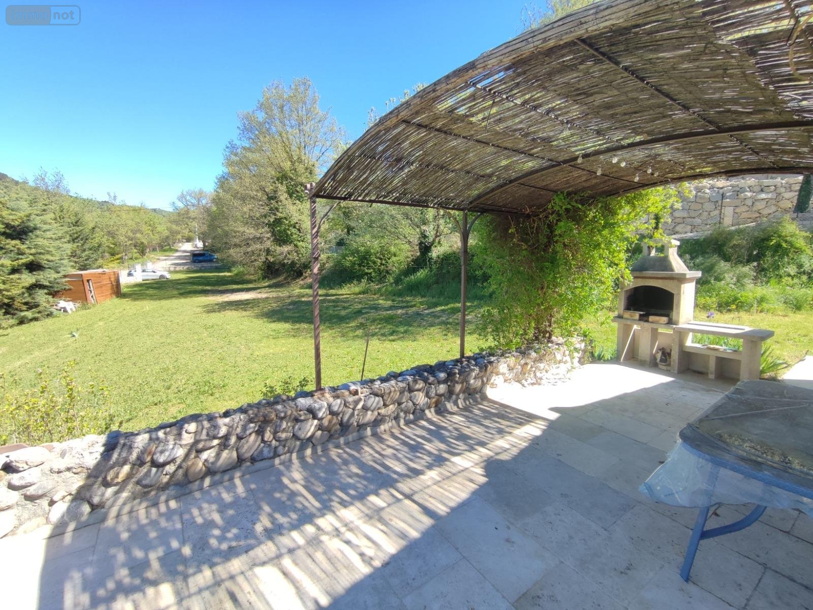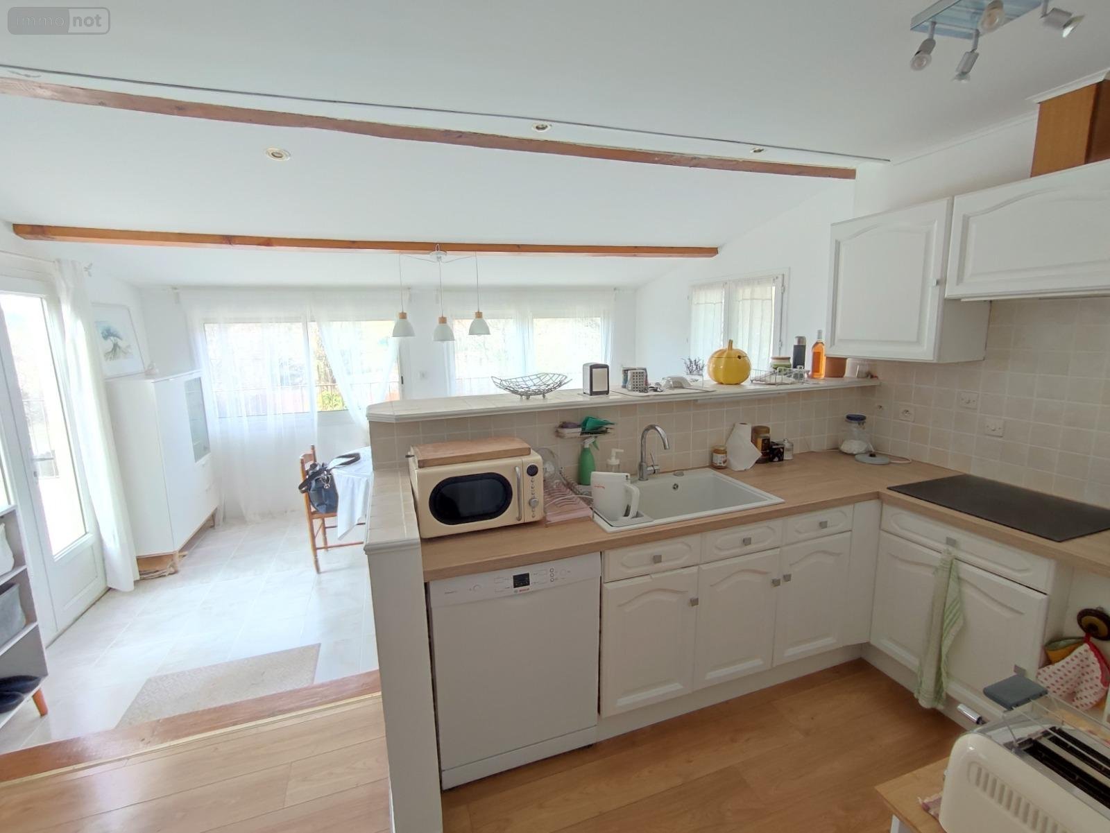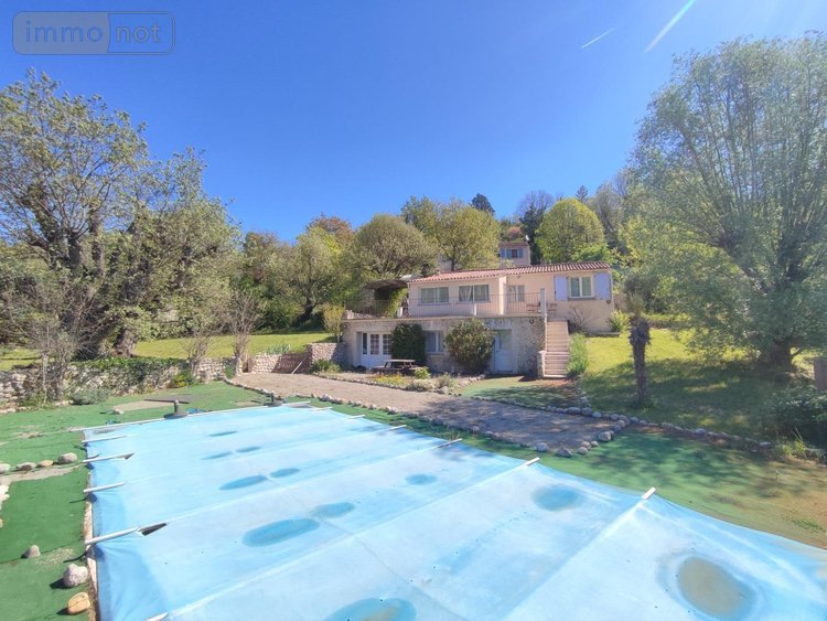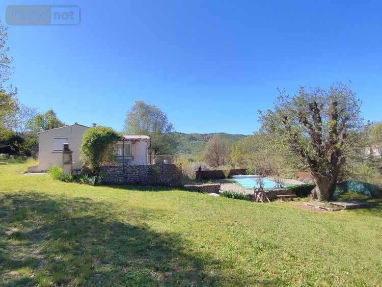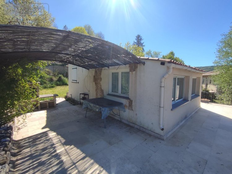 Sur 2178 m² de terrain avec piscine, jolie maison de 55 m² comprenant cuisine ouverte sur salon et salle à manger, une chambre avec placard, salle d'eau avec wc. Terrasse offrant vue dégagée sur la piscine et les collines environnantes. Au niveau inférieur sans accès intérieur, deux pièces avec salle d'eau et wc pour un total de 20 m², un atelier (rangement...). Au calme.