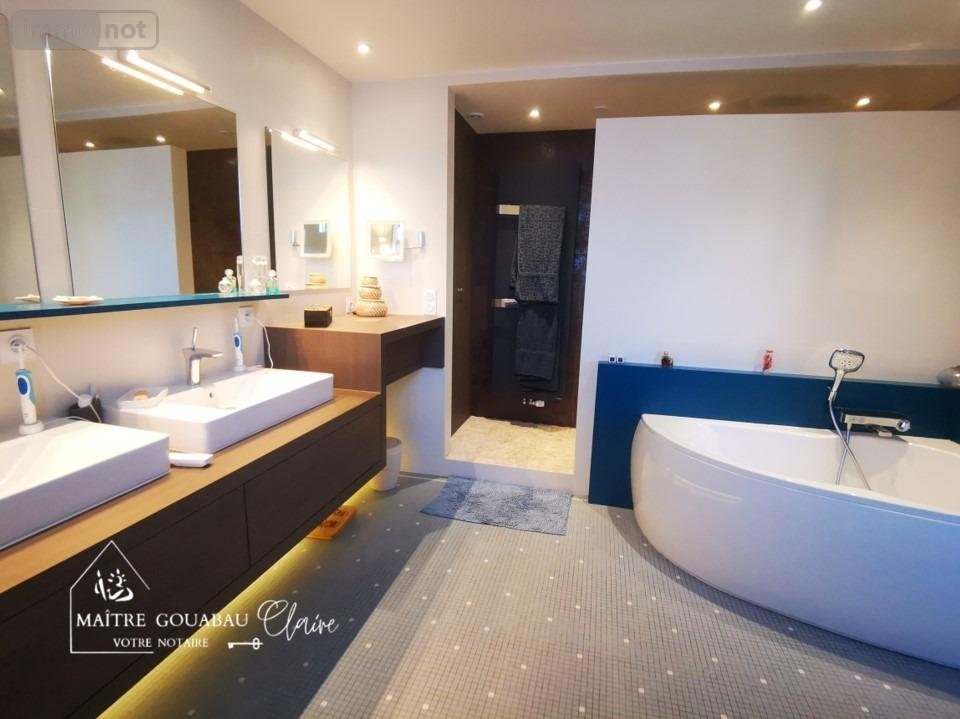 au 1er étage: un grand palier distribue: un wc indépendant, 2 chambres: l'une de 29 m² (avec cabinet de toilette) et une suite parentale (48m²environ) comprenant un dressing-room, une SDB (18m² environ) équipée rétro-éclairage, baignoire d'angle, lavabox2, une grande douche italienne avec sèche serviette integré et de nombreux placards et rangement - au même niveau, un dégagement distribue l'espace des enfants comprenant: 1 SDE avec Douche et lavabo et 3 belles chambres avec vue sur les jardins et l'une bénéficiant de son propre cabinet de toilette.
