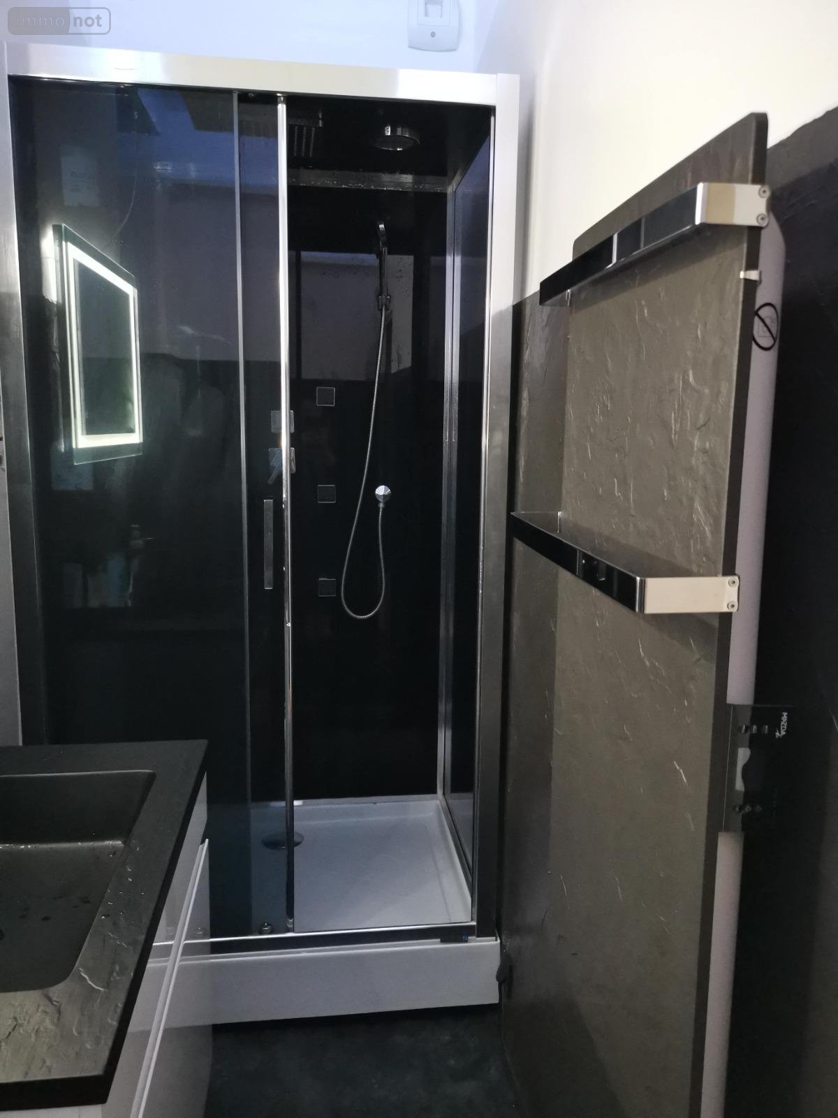 Au premier étage : Séjour, cuisine, une chambre avec salle de bains et WC, une pièce de 12m2 attenante par une large ouverture à une grande pièce (environ 20m²) bien éclairée (deux grands velux au plafond) à fort potentiel.
