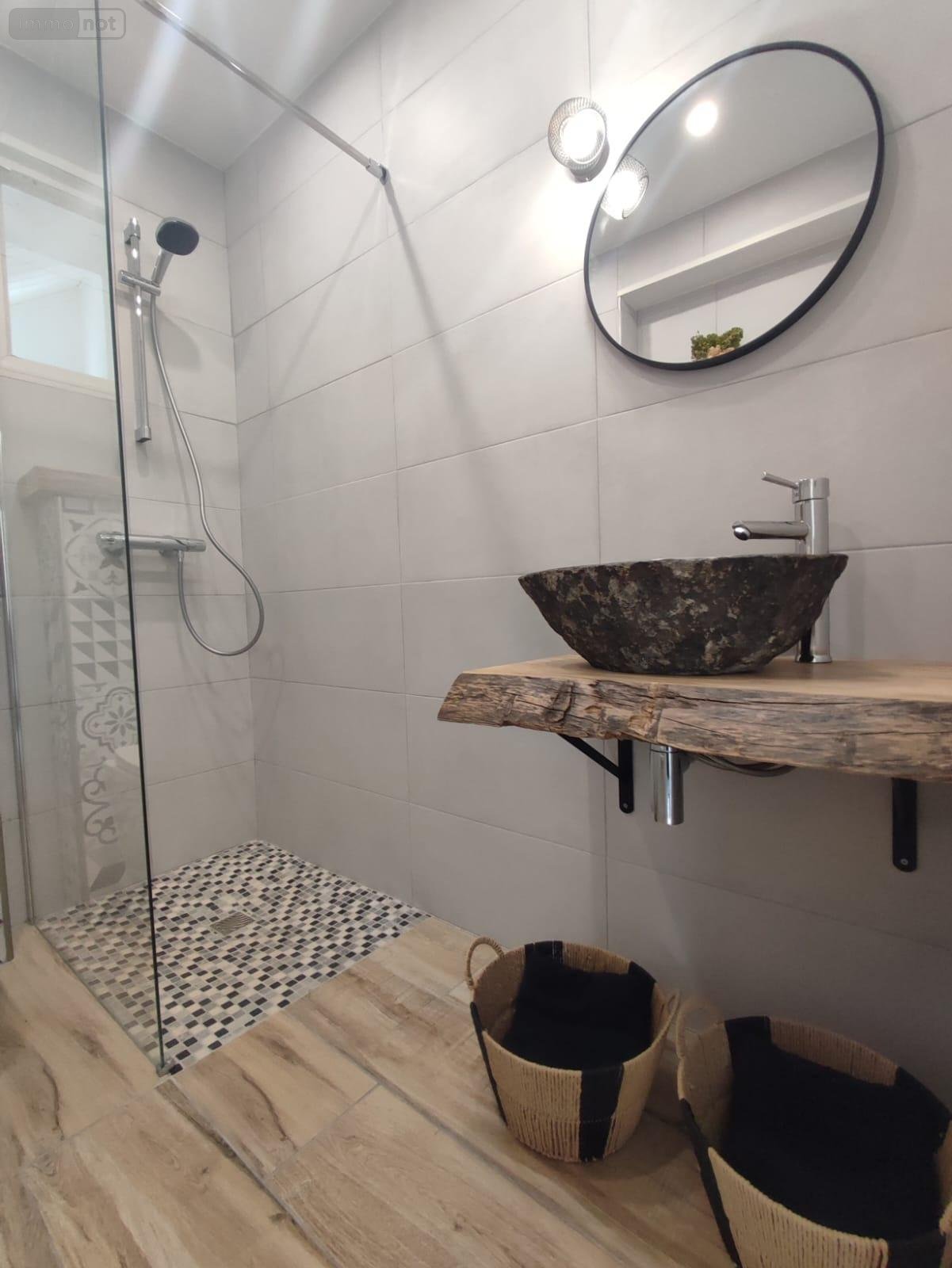 A REYNES à vendre villa 4 faces sur 1.495 m² de terrain et 91 m² habitables entièrement rénovée. Ce bien se compose de deux parties pouvant être réunies en une seule. La première est un T3 au premier étage avec un pièce de vie donnant sur un balcon avec cuisine équipée très lumineuse. Une chambre avec placard, WC / salle de bain et un bureau avec placard. Au rez-de-jardin un appartement T2 composé d'une cuisine équipée avec pièce de vie, chambre, WC / salle d'eau. Un petit garage avec porte automatisée. Double vitrage, volets roulants électriques, pompe à chaleur chaudière récente air/eau, climatisation réversible au rez-de-jardin. Le tout est équipé d'un système de vidéo-surveillance et édifié sur un jardin arboré piscinable avec un cabanon et deux pergolas. Canal d'arrosage en limite de propriété et parking privatif 3 places devant la maison.