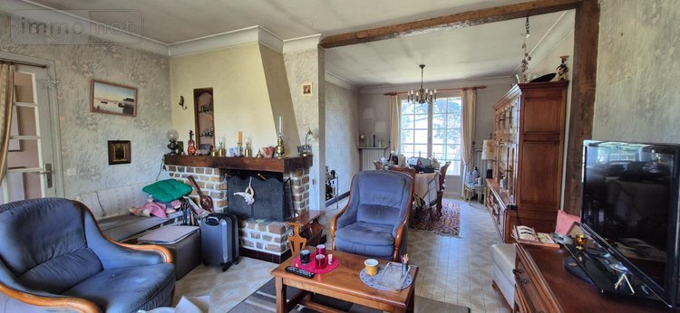 Pavillon de 1970 à vendre à La-Ferté-Bernard dans la Sarthe (72) comprenant : entrée avec placard 5.5m² , séjour - salon avec cheminée 27m², cuisine aménagée 10m², trois chambres dont deux avec placard 10m² - 10m² - 12m², salle de bains 6m², WC indépendants.