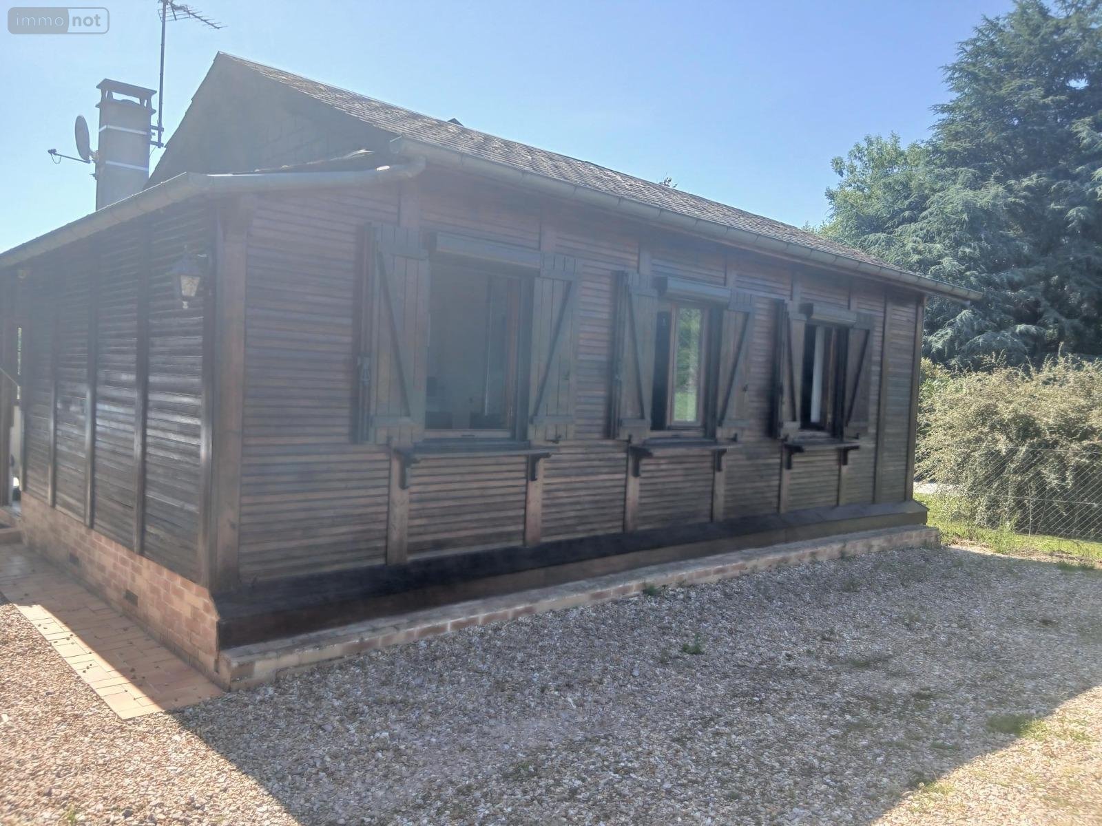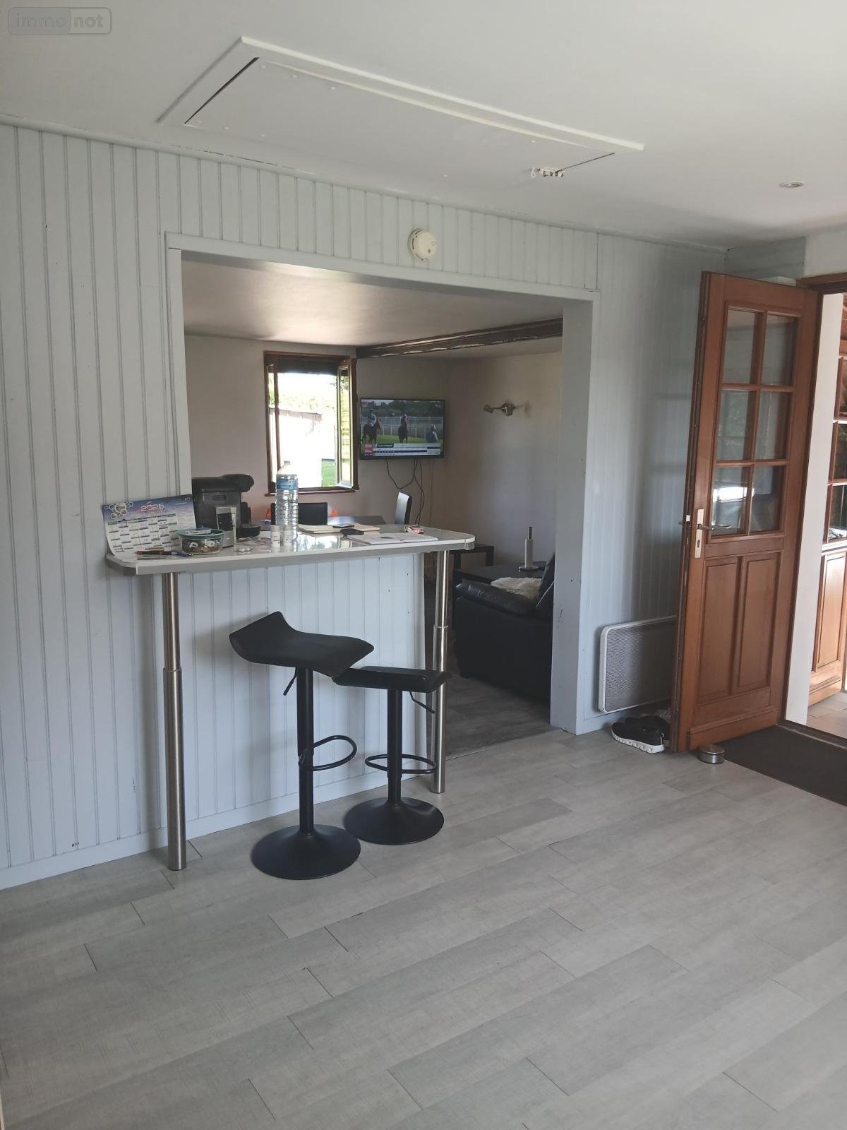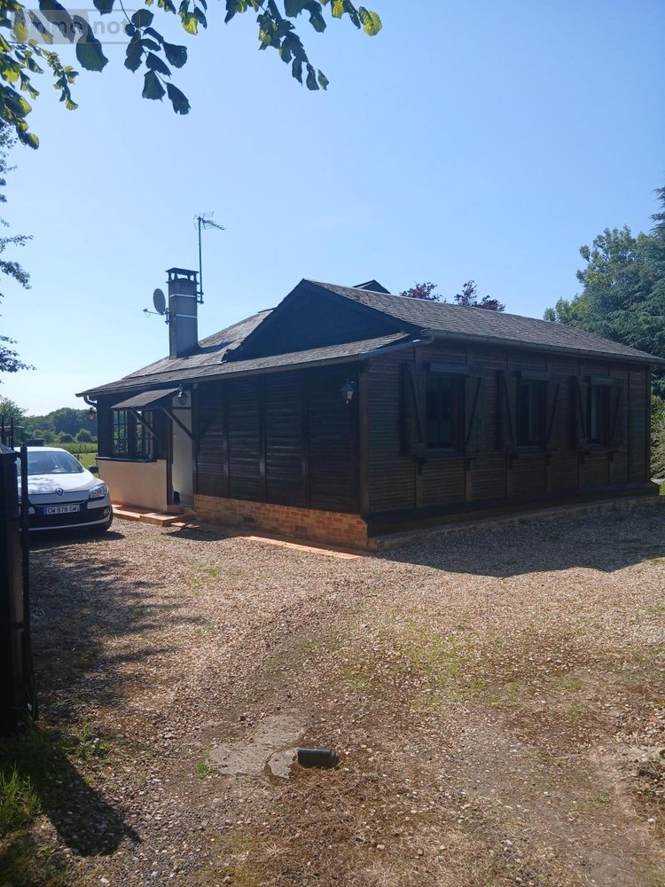 Entre Honfleur et Pont Audemer sur la commune de Fatouville-Grestain, une petite maison style chalet comprenant une entrée sous véranda, une cuisine aménagée avec une cheminée insert , un séjour-salon, une chambre avec rangement, salle de bain, WC.