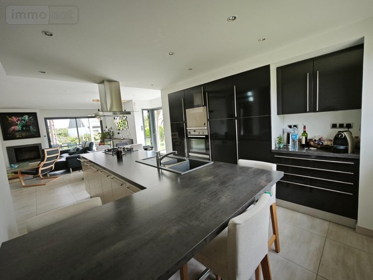 Elle vous offre 145 m² habitable avec au rez-de-chaussée une entrée avec placard donnant sur une pièce à vivre ouverte avec une cuisine équipée aménagée et un salon séjour avec accès terrasse, un cellier, une salle d'eau et un WC séparé.