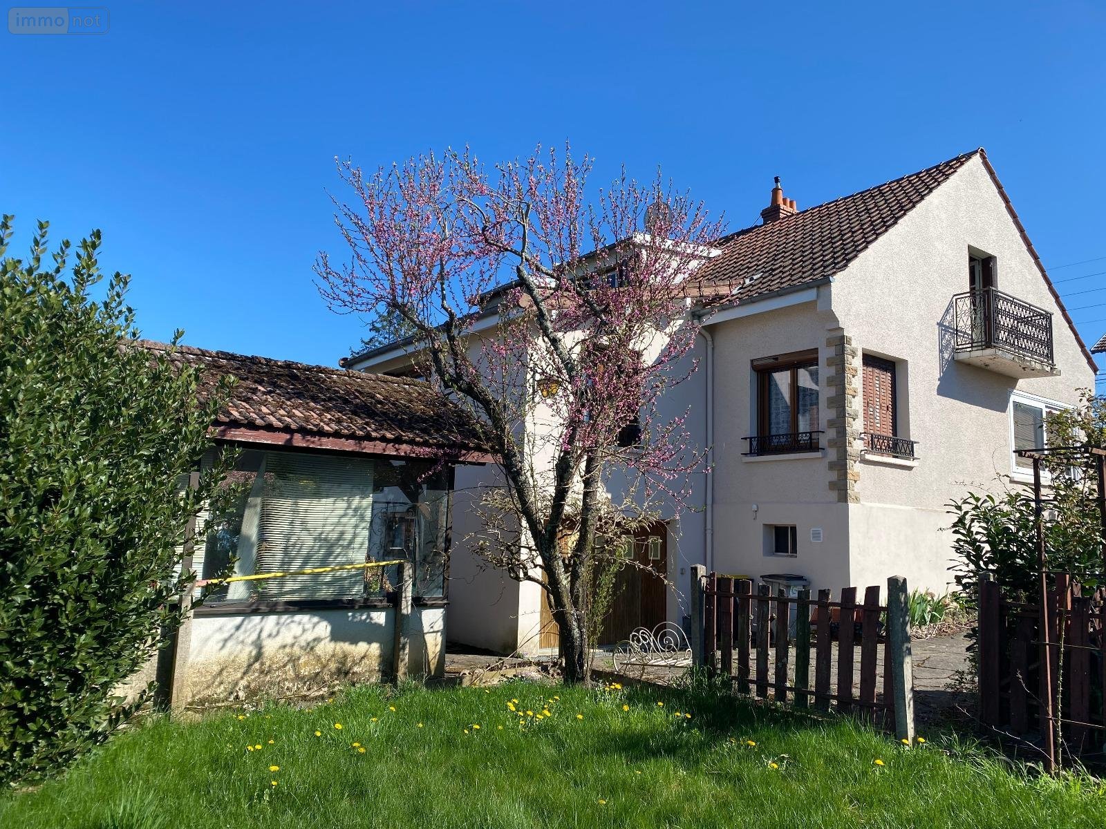 Maison à vendre à PARAY LE MONIAL en Saône-et-Loire (71) - Venez découvrir cette maison mitoyenne, élevée sur sous-sol et d'un étage, comprenant au rez-de-chaussée surélevé, une véranda, une entrée avec placard desservant une cuisine meublée de 10 m² environ, un salon-séjour en L de 33 m² environ, accolé à la cuisine (simple cloison entre les deux), une chambre avec placard de 12 m² environ, une salle de douche, un WC indépendant ; A l'étage, deux chambres de 12 m² et 10 m² dont l'une avec mansardes accessibles, grenier ; Au sous-sol, garage, une cuisine d'été de 16 m² environ, chaufferie, buanderie, un garage de 17 m² environ ; Une dépendance extérieure à usage de salon d'été ; Petites dépendances ; Le tout édifié sur un terrain clos de 540 m²; Portail motorisé; Assainissement collectif; N'hésitez pas à me contacter pour une visite.