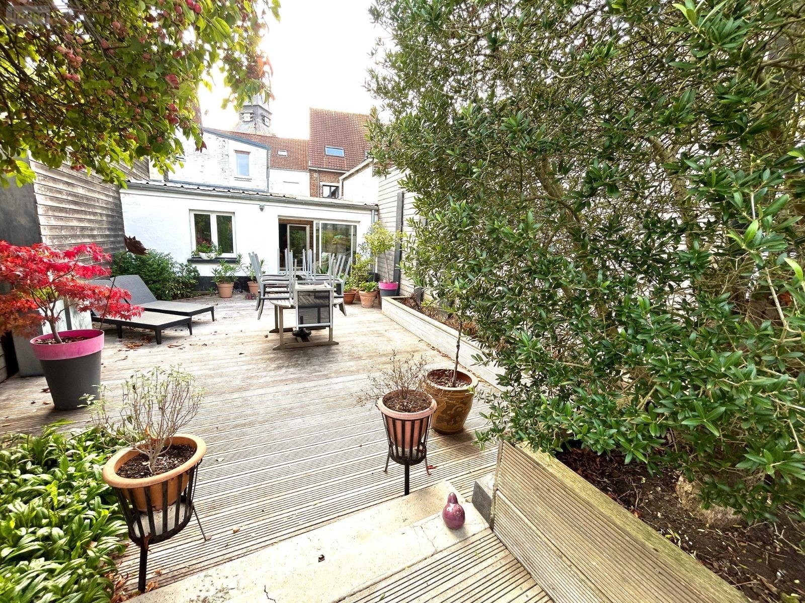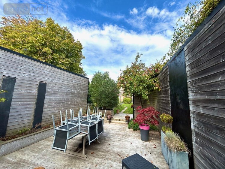 Extérieur : jardin bien exposé, au calme avec grande terrasse, accès par l'arrière.