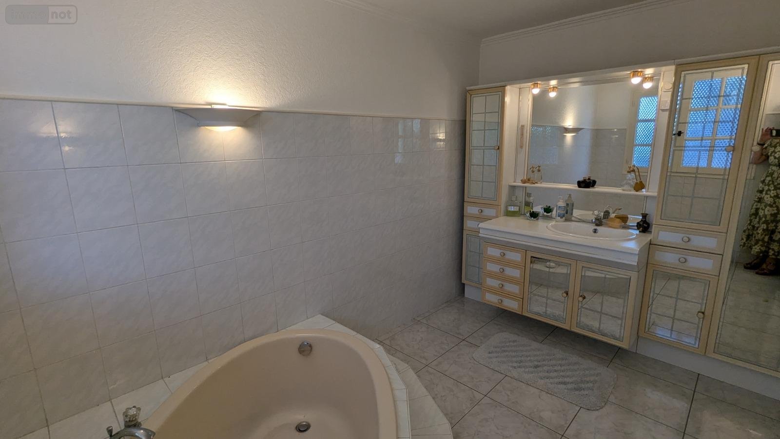 - au rez-de-chaussée : cuisine, un salon-séjour traversant avec deux placards et accès à la terrasse carrelée et son store banne, une salle de bain avec baignoire d'angle, un wc indépendant et possibilité de créer une chambre près de la salle de bains,