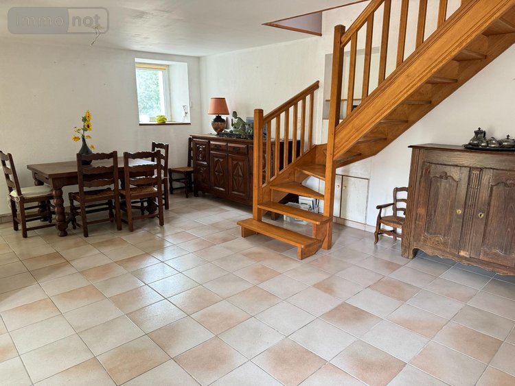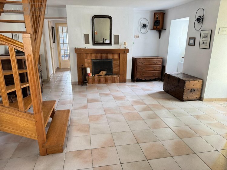 rez-de-chaussée : hall, séjour, cuisine, arrière-cuisine, w.c., dégagement, salle d'eau, une chambre, et bureau ; à l'étage : trois chambres, dégagement, salle de bains, et w.c. ; grenier au-dessus. Jardin.