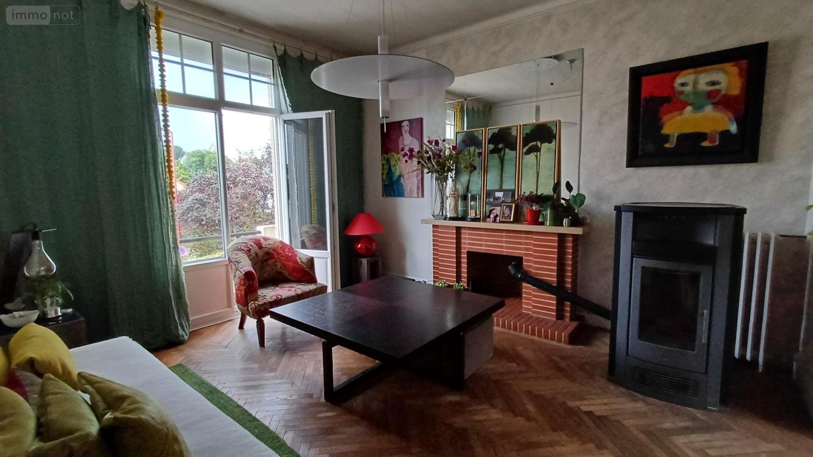 - Au premier étage : cuisine à rénover, séjour-salon traversant (parquet en chêne) avec poêle à granules, wc,