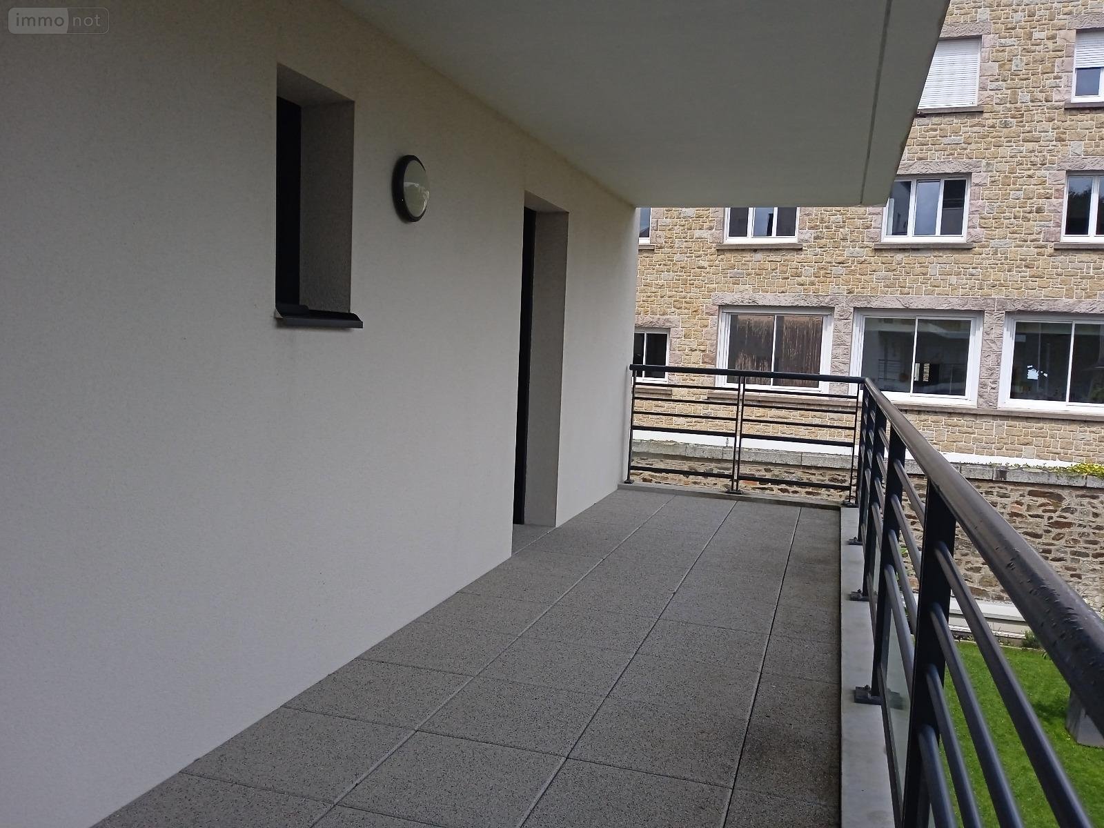 A vendre Fougères en Ille-et-Vilaine (35), bel appartement au calme, de 79,43 m² au 1er étage d'un immeuble sécurisé (construction 2015 avec interphone et ascenseur) bénéficiant de deux balcons de 16 m² chacun, idéalement situé à proximité du centre-ville, à deux pas des commerces, des écoles et des transports, se compose de la manière suivante : une pièce de vie avec séjour et cuisine, aménagée et équipée (plaques de cuisson, hotte, four, lave-vaisselle), deux chambres dont une avec placards, une salle d'eau et un WC indépendant. Place de parking au sous-sol de l'immeuble. Idéal pour un premier achat, un investissement locatif ou un pied-à-terre.