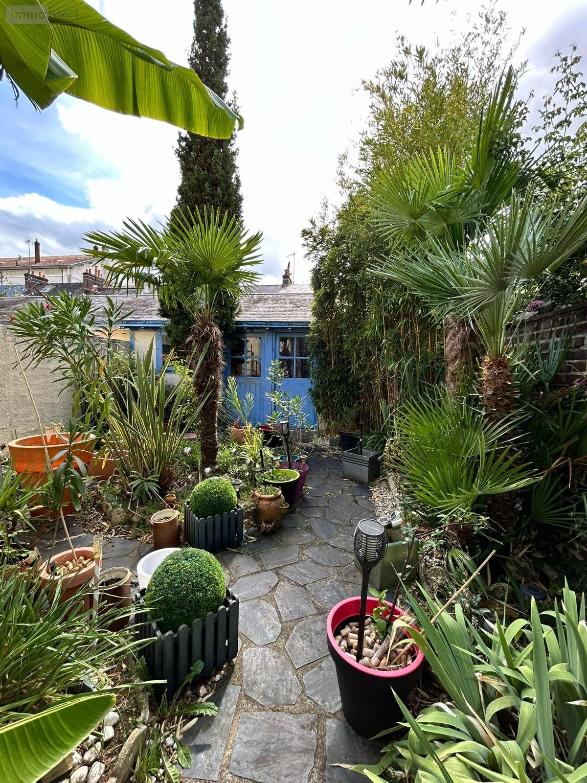 Jardin de ville sur l'arrière avec dépendances dans le fond.