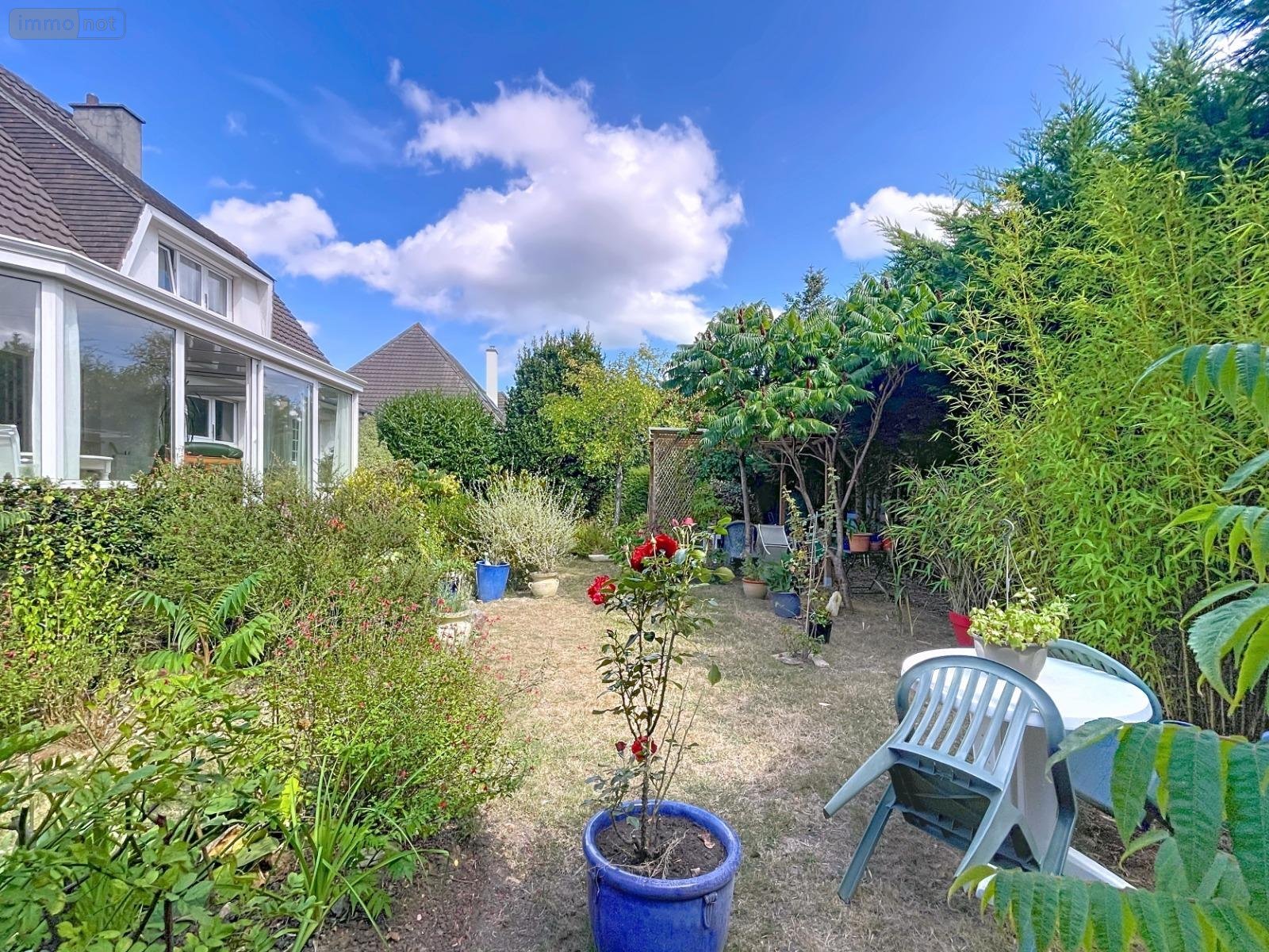 Sous-sol total avec bureau aménagé et buanderie. Jardin très chaleureux.